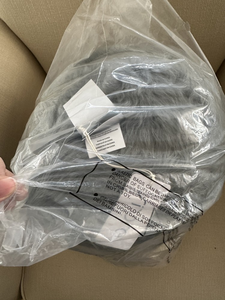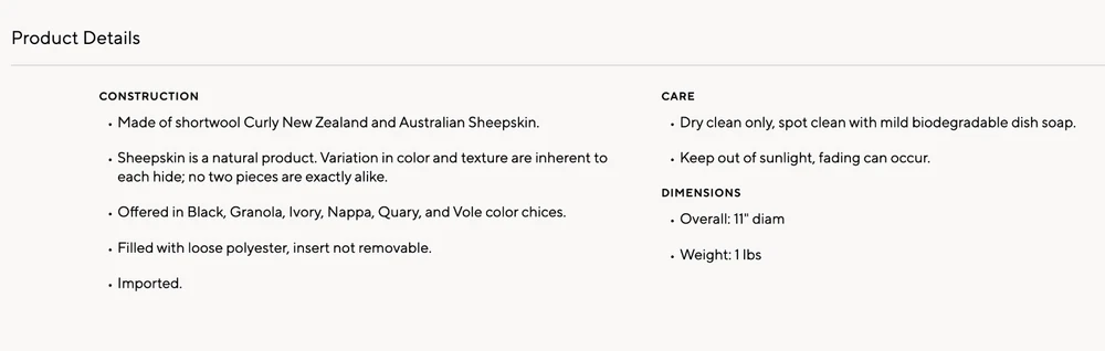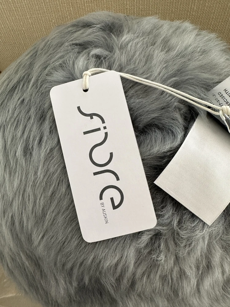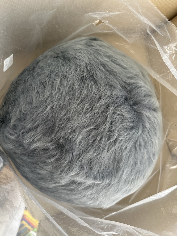 POTTERY BARN CAYE LONGWOOL SHEEPSKIN BALL PILLOW Color -Quarry ~ NEW