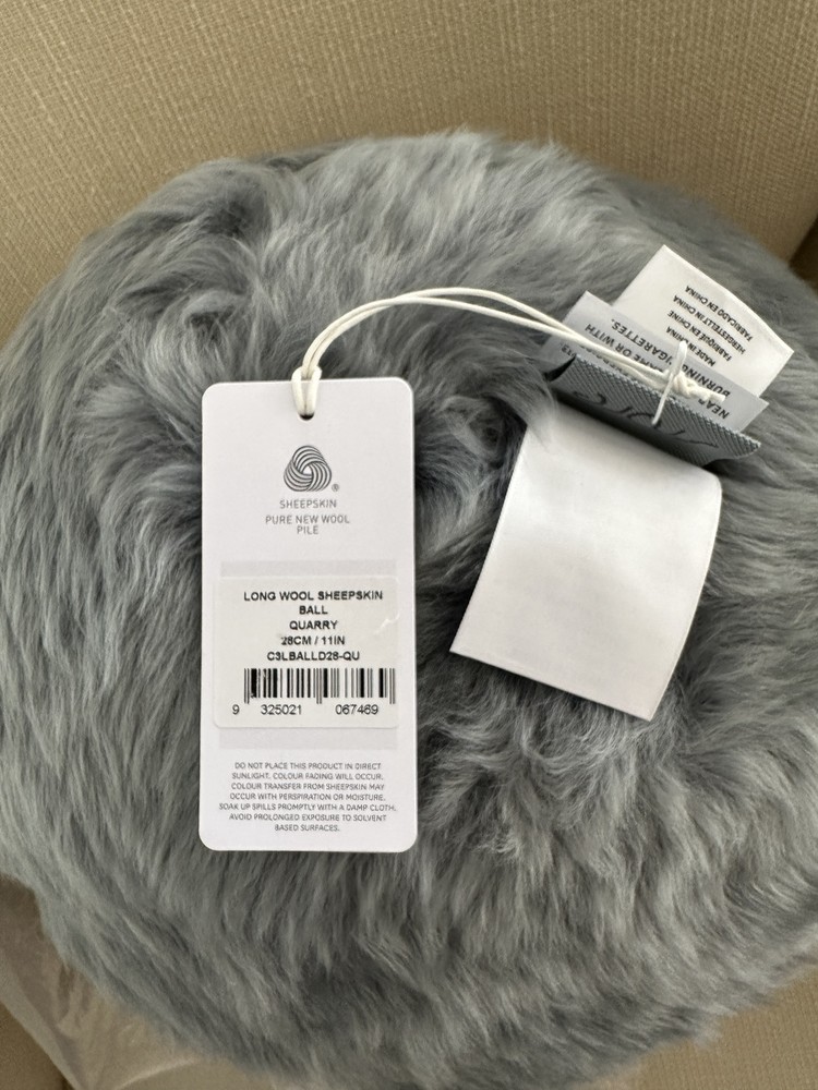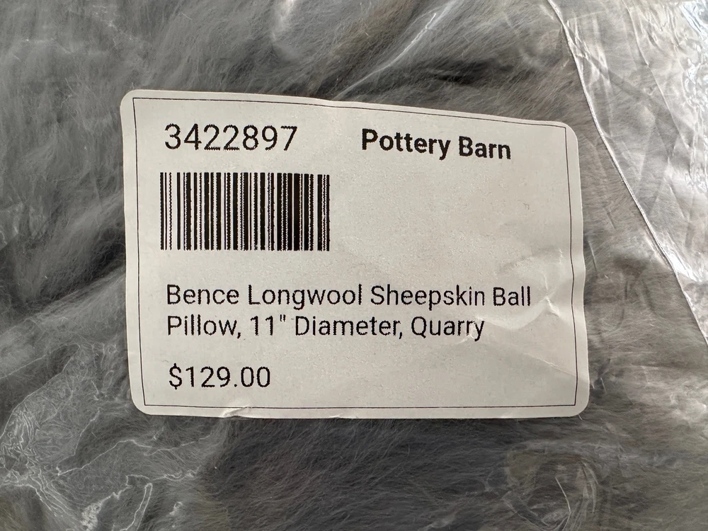 POTTERY BARN CAYE LONGWOOL SHEEPSKIN BALL PILLOW Color -Quarry ~ NEW...