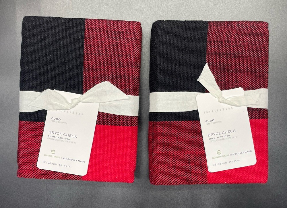 Pottery Barn Bryce Check Set of 2 Euro Shams Brand new, mint condition, with tags, smoke free & pet free home. Please visit their website for more detailed photos of the color Please make note one of the front paper tags is missing, as seen in the photo.