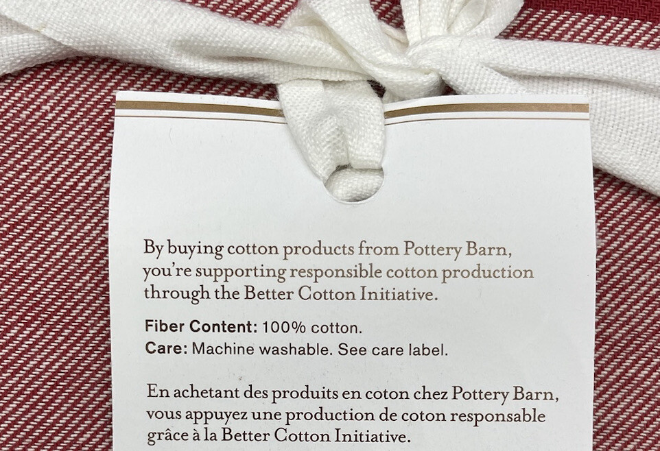 Arrived quickly. It arrived new, but the Williams Sonoma red tartan tablecloth was labeled as 70x108. I measured it right out of the package, before washing it, and it measured 70x106. So its mislabeled by the manufacturer. It's a beautiful tablecloth. I decided to keep it anyway taking my chances it won't shrink in a cold water wash.