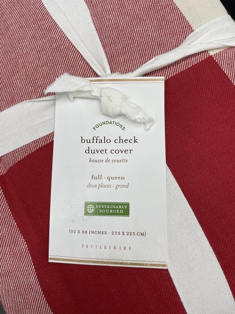 Pottery Barn Buffalo Check Duvet & Shams Duvet: Full / Queen 2 Standard Shams Color: Red and White Check Brand new, mint condition, with tags, smoke free & pet free home. Please visit their website for more detailed photos of the color Retail: $460