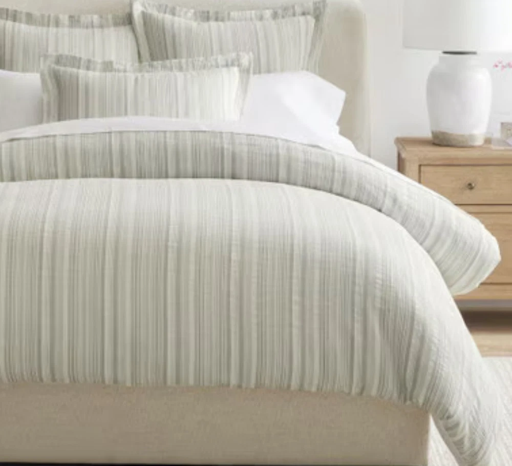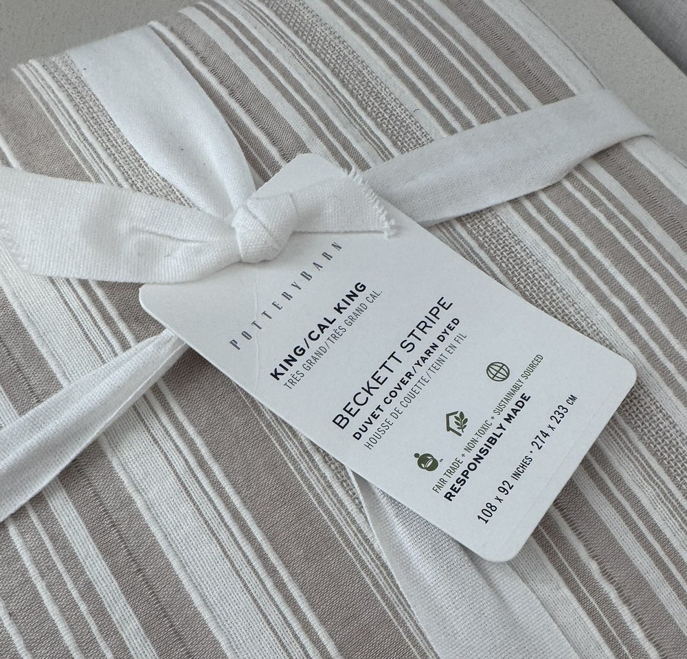 POTTERY BARN Beckett Stripe Yarn Dye Textured Duvet Cover, King/cal King, NWT Khaki color Retails for $159 100% cotton