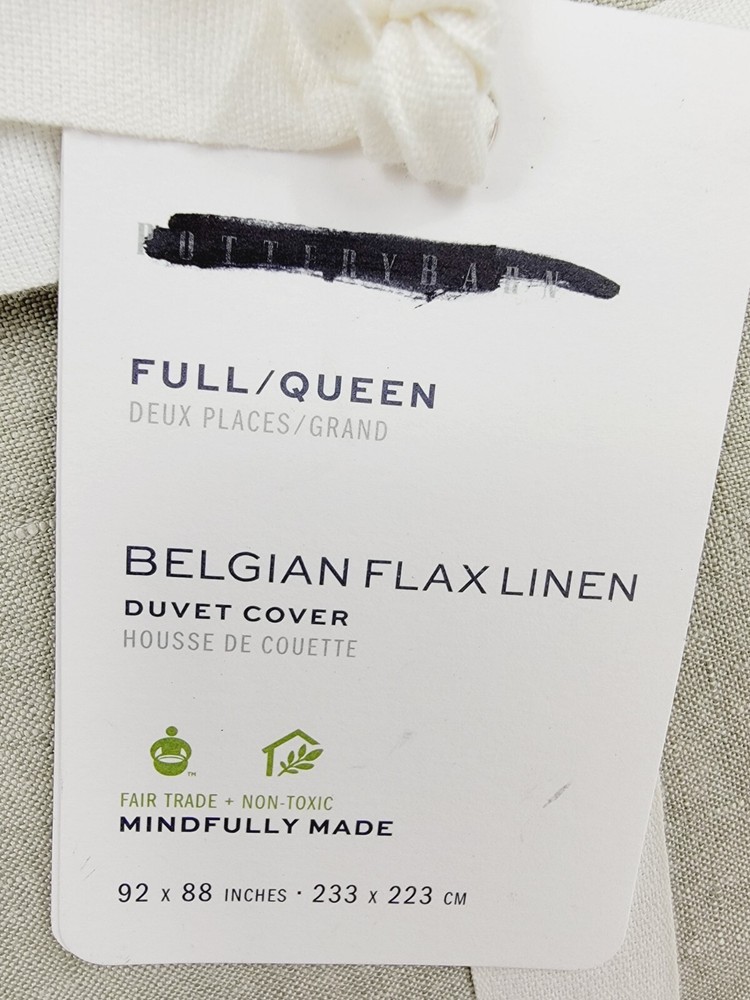 POTTERY BARN Belgian Flax Linen Duvet -Full/Queen- Eucalyptus. Duvet Cover is in Pristine Open Box Condition, Brand New. Duvet Cover Will Arrive Re-Packaged. Orders Ship FREE Next Business Day!...