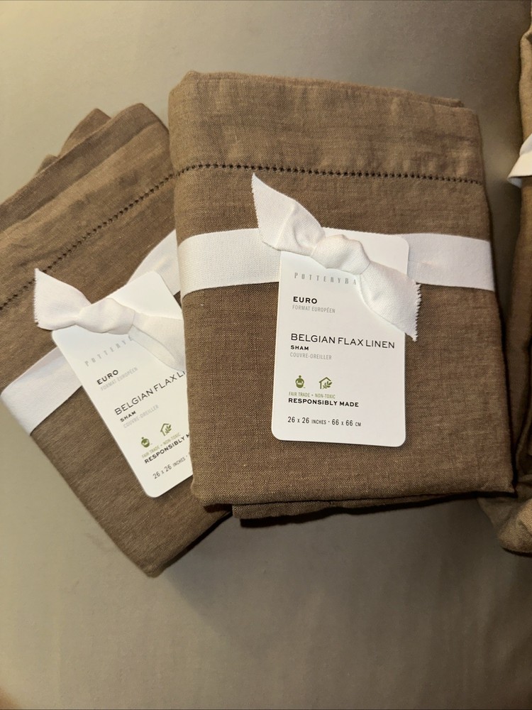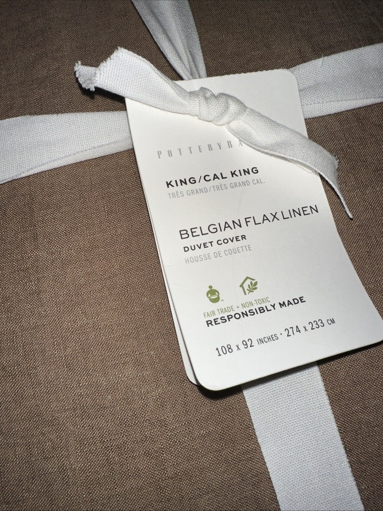 POTTERY BARN Belgian Flax Linen Duvet-White-King/California king 2 euro shams Linen woven from 100% Belgian flax. Reverses to same. prewashed for a supersoft hand feel. Ideal for warm or cool temperatures. Duvet features a hidden button closure with inner ties that keep insert in place. King/Cal. King: 92" l x 108" w