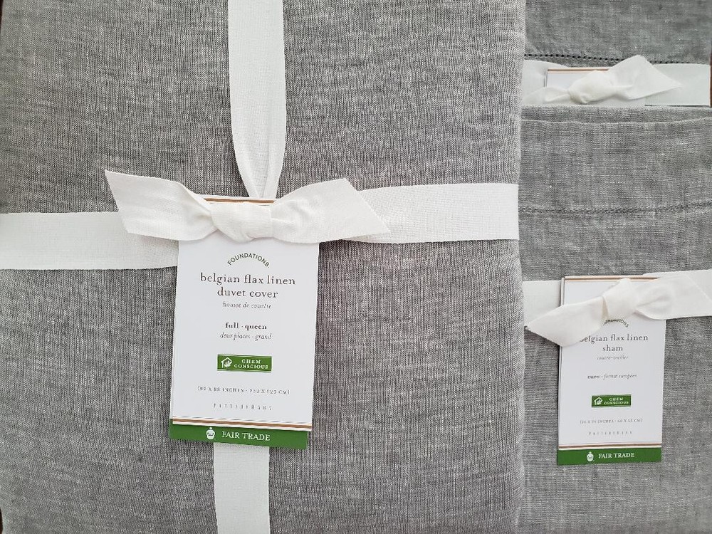 POTTERY BARN BELGIAN FLAX LINEN FULL/QUEEN DUVET ~ 92 X 88" AND 2 ~ 26 X 26" BELGIAN FLAX LINEN EURO SHAMS BRAND NEW FLAGSTONE You are buying a BRAND NEW Pottery Barn Belgian Flax Linen Full/Queen Duvet. It measures 92" W x 88" L. Included are two 26 x 26" Belgian Flax Linen Euro shams. The color is FLAGSTONE. Pottery Barn describes this as , " Woven from the world’s finest Belgian flax, our linen bedding is prewashed for incredible softness—and only gets better with time. Lightly textured and cool to the touch, this natural-fiber fabric is prized for its durability, breathability and lived-in look . " DETAILS Linen woven from 100% Belgian flax. Prewashed for a supersoft hand feel. Ideal for warm or cool temperatures. Duvet cover features a hidden button closure with inner ties that keep the insert in place; sham features an envelope closure. Machine wash. Imported. PAYMENT METHOD Buy it now payment is required at checkout. SHIPMENT METHOD US only shipping is free. Items will be sent within one day of sale date. Returns are not accepted. I DO NOT MAKE OR ACCEPT "BEST OFFERS" SUCH INQUIRIES WILL GO UNANSWERED