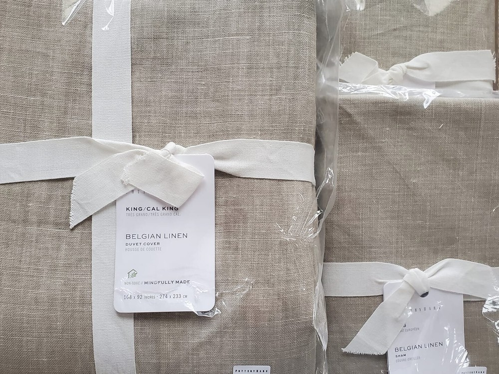 POTTERY BARN BELGIAN LINEN LIBECO KING DUVET ~ 108" X 92" AND 2 ~ 36" X 20" BELGIAN LINEN LIBECO KING SHAMS BRAND NEW PEWTER You are buying a BRAND NEW Pottery Barn Belgian Linen Libeco King Duvet. It measures 108" W x 92" L. Included are two 36" x 20" Belgian Linen Libeco King shams. The color is PEWTER. *** Indoors, it looks beige. But, in natural lighting it has a hint of a silvery, light gray color *** Pottery Barn describes this as , " For the finest in linen luxury, we went straight to the source: Libeco, one of the oldest and most renowned mills in Belgium. The result is an heirloom-quality duvet cover with the cool, smooth touch and elegant drape that have made linen a timeless and beloved choice for bedding . " DETAILS Made of 100% Libeco™ linen. Yarn-dyed for long lasting color. Reverses to same. Duvet features a button closure and interior ties to help keep insert (sold separately) in place; sham features a side closure. Machine wash cold, gentle cycle. Imported. PAYMENT METHOD Buy it now payment is required at checkout. SHIPMENT METHOD US only shipping is free. Items will be sent within one day of sale date. Returns are not accepted. I DO NOT MAKE OR ACCEPT "BEST OFFERS" SUCH INQUIRIES WILL GO UNANSWERED
