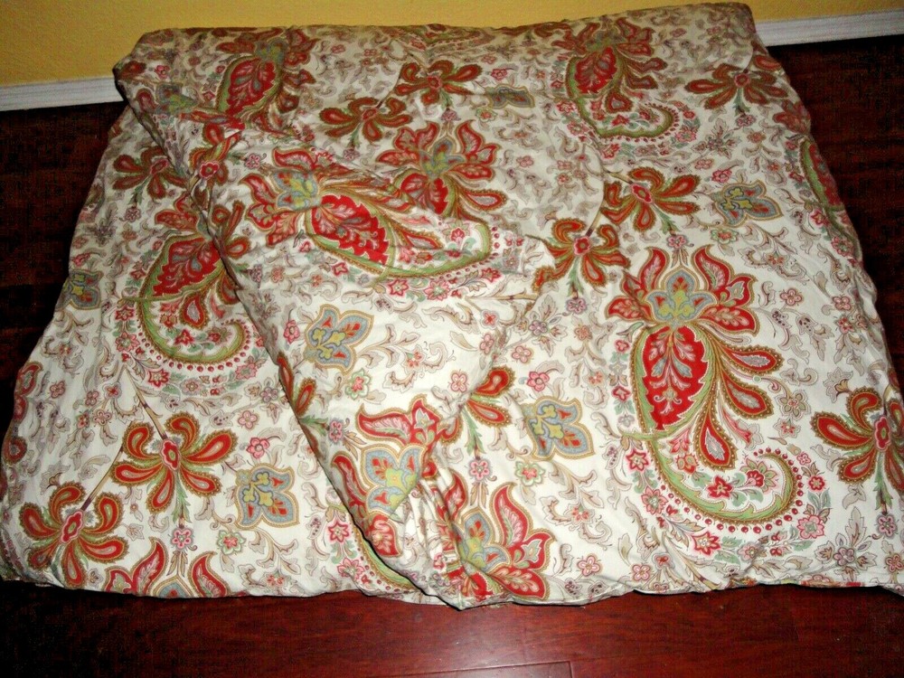INCLUDES (1) CHARLIE PAISLEY RED CREAM GREEN KING/CALIFORNIA KING DUVET 104 W X 90" L 100% cotton medium-HEAVY WEIGHT FABRIC NO DEFECTS PET FREE SMOKE FREE BUSINESS/STORE...
