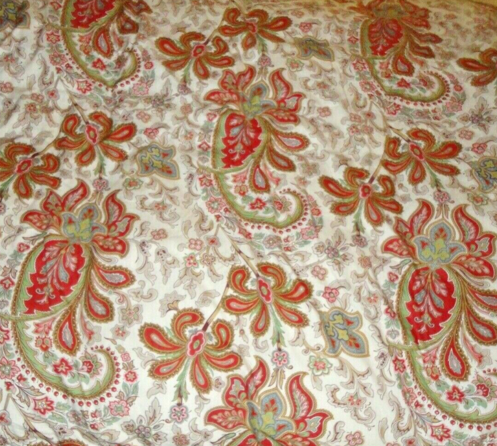 INCLUDES (1) CHARLIE PAISLEY RED CREAM GREEN KING/CALIFORNIA KING DUVET 104 W X 90" L 100% cotton medium-HEAVY WEIGHT FABRIC NO DEFECTS PET FREE SMOKE FREE BUSINESS/STORE