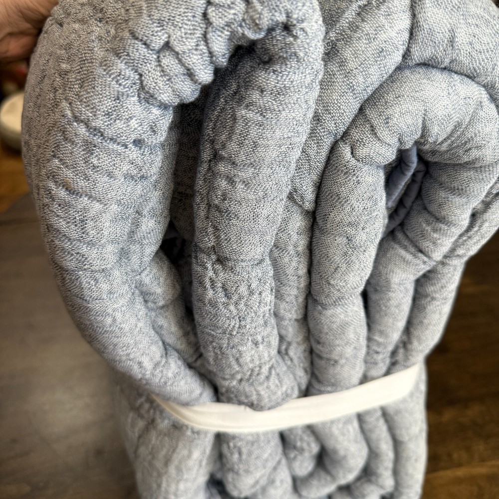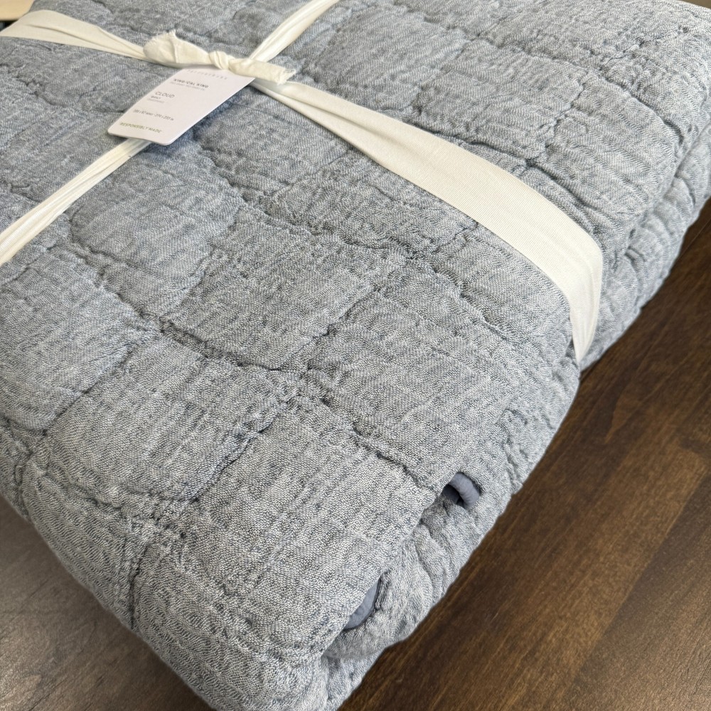Supremely soft, our handcrafted bedding is lightweight yet exceedingly cozy. Each cotton-linen piece is hand stitched into little pockets of warmth that lend plenty of loft for a dreamy year-round layer. Details Material: Front is hand-stitched from a linen and cotton blend. Filled with 100% polyester. Reverses to cotton. Certification and Standards: OEKO-TEX® STANDARD 100 certified, tested for 1000+ harmful substances (14.HUS.42449 HOHENSTEIN HTTI). This item has been ethically hand-stitched to the Nest Standards, ensuring the social and environmental protections of workers in home or small workshop-based production. Care Instructions Machine wash in cold water, gentle cycle. Use non-chlorine bleach when needed. Tumble dry on low. Dimensions King/Cal. King Quilt: 92" l x 108" w Shipping & handling: We ship same or next day. Large comforters & quilts are vacuum packed with a reusable storage bag to save shipping cost and preserve the item. Questions: Please reach out. We respond very quickly. We strive for 5-star service in our product quality, shipping speed & customer service. We know you have many choices on eBay and appreciate that you have chosen to shop with us. Zoe's Castle | eBay Stores
