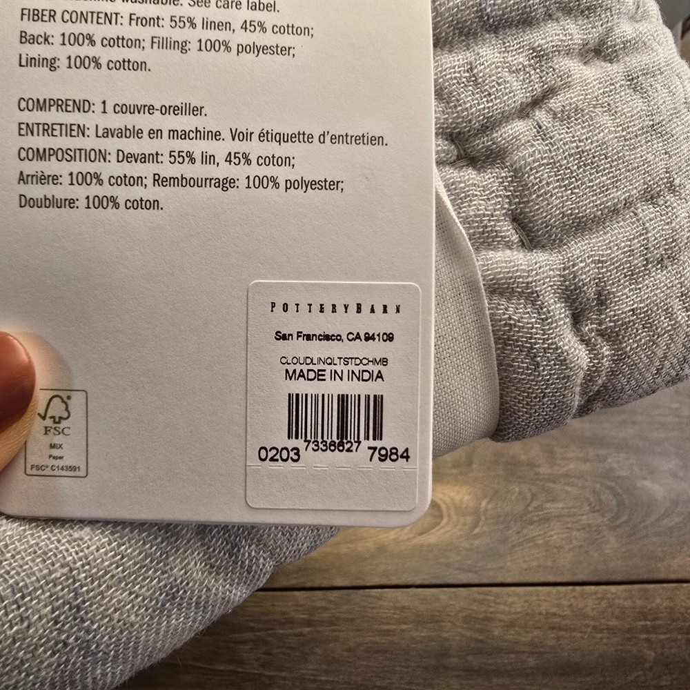 Construction Hand stitched front fabric of quilt is 55% linen and 45% cotton. Filled with 100% polyester batting. Sham features an envelope closure. Reverses to 100% cotton. STANDARD 100 by OEKO-TEX® Certified: WSI Certificate #: 14.HUS.42449 HOHENSTEIN HTTI: tested for 1000+ harmful substances to keep you and your family safe from chemicals common to textile manufacturing. Care Machine wash in cold water, gentle cycle. Non-chlorine bleach when needed. Tumble dry on low. Dimensions Standard Sham: 20" h x 26" w Euro Sham: 26" sq King Sham: 20" h x 36" w Shipping & handling: Large comforters & quilts are vacuum packed with a reusable storage bag to save shipping cost and preserve the item. Questions: Please reach out. We respond very quickly. We strive for 5-star service in our product quality, shipping speed & customer service. We know you have many choices on eBay and appreciate that you have chosen to shop with us. We have a variety of new and used items for whole family! Please check out our store and be sure to add us as a favorite seller. Zoe's Castle | eBay Stores