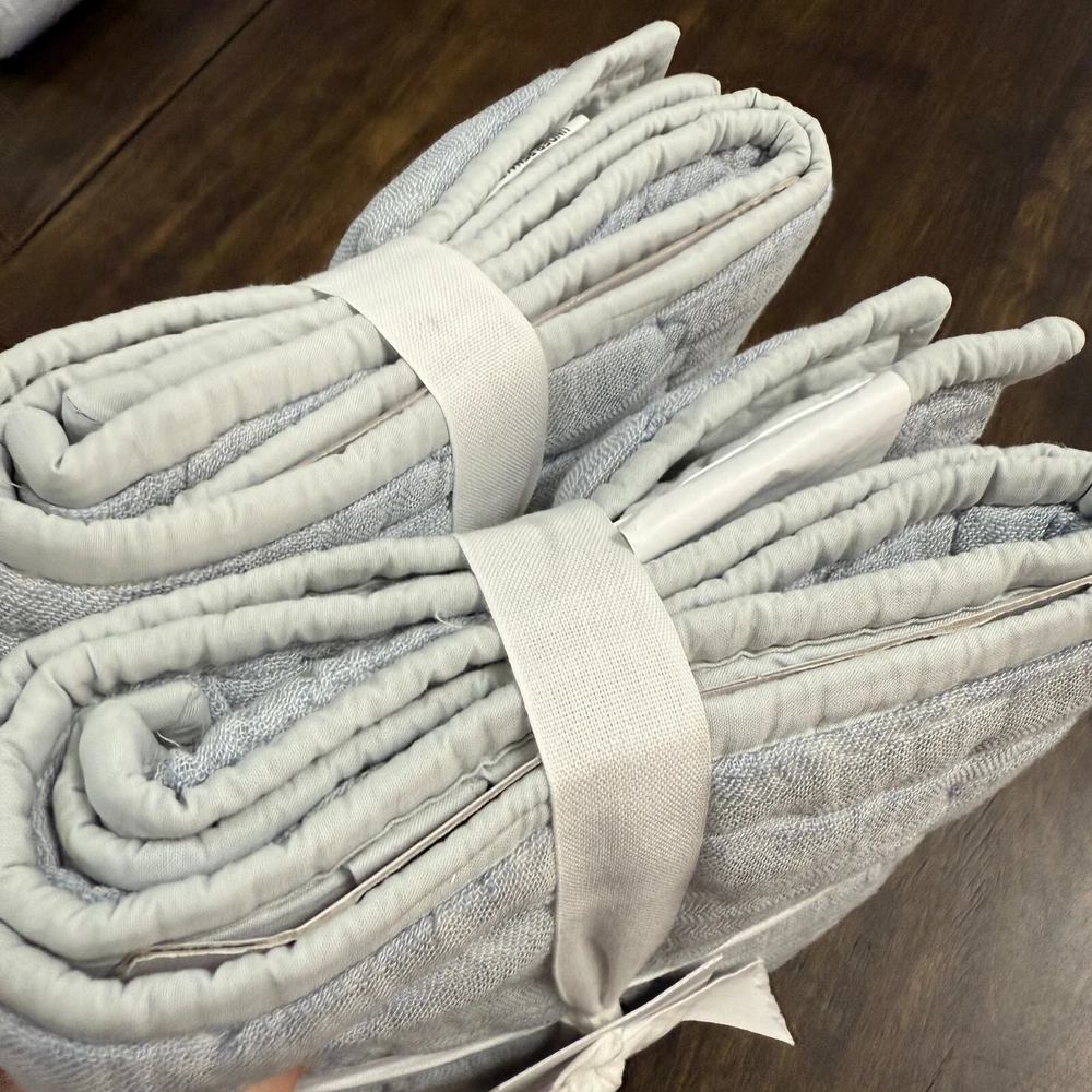 Construction Front is hand-stitched from a linen and cotton blend. Filled with 100% polyester. Reverses to cotton. OEKO-TEX® STANDARD Care Machine wash in cold water, gentle cycle. Use non-chlorine bleach when needed. Tumble dry on low. 2 STANDARD SHAMS Shipping & handling: We ship same or next day. Large comforters & quilts are vacuum packed with a reusable storage bag to save shipping cost and preserve the item. Questions: Please reach out. We respond very quickly. We strive for 5-star service in our product quality, shipping speed & customer service. We know you have many choices on eBay and appreciate that you have chosen to shop with us. Zoe's Castle | eBay Stores