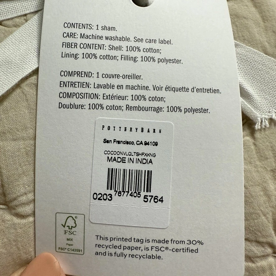 Garment washed for incredible softness, our cotton voile quilt has a relaxed, lived-in feel we love. Each piece is diamond quilted by hand for plush texture and the perfect amount of loft. With a just-right weight, it's the ideal layering piece as one season transitions to the next. Construction Handcrafted from 100% cotton, reverses to same. 100% polyester fill. Sham features an envelope closure. Sham and insert sold separately. Care Machine wash in warm water; gentle cycle. Only non-chlorine bleach when needed. Tumble dry on low heat; remove promptly. Warm iron as needed. Dimensions King Sham: 20" h x 36" w Shipping & handling: We ship same or next day. Large comforters & quilts are vacuum packed with a reusable storage bag to save shipping cost and preserve the item. Questions: Please reach out. We respond very quickly. We strive for 5-star service in our product quality, shipping speed & customer service. We know you have many choices on eBay and appreciate that you have chosen to shop with us. Zoe's Castle | eBay Stores
