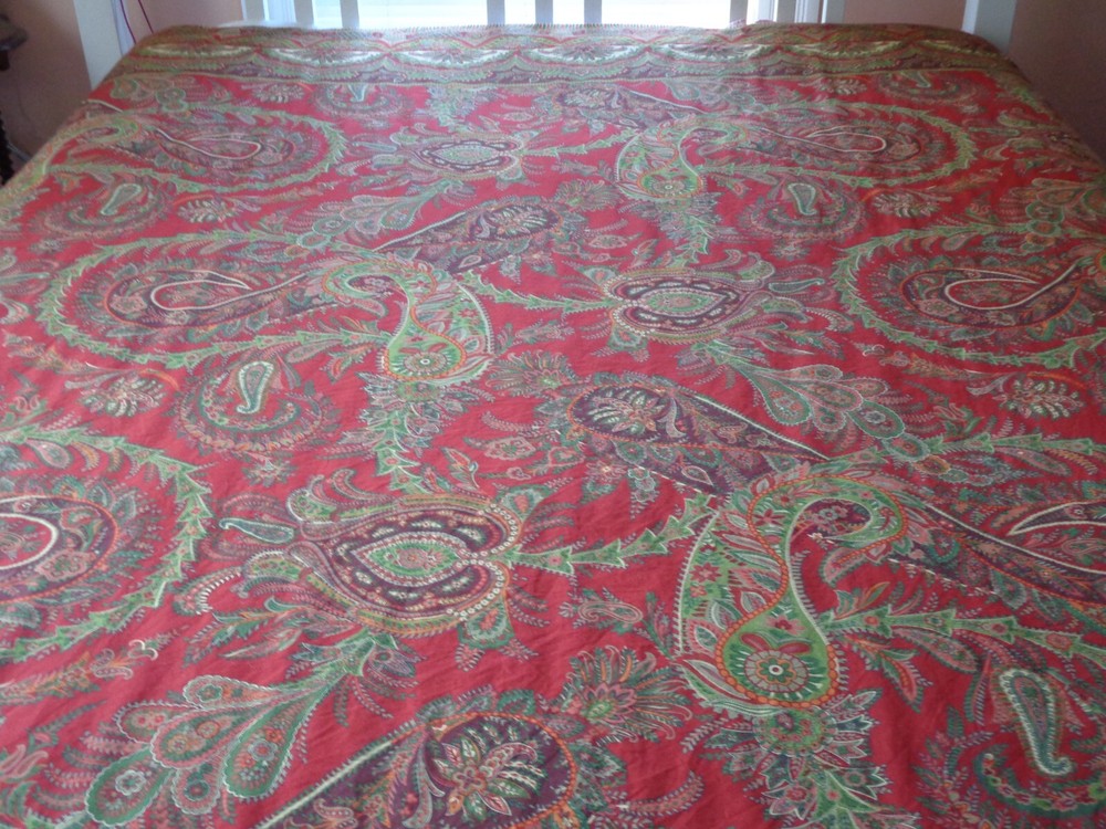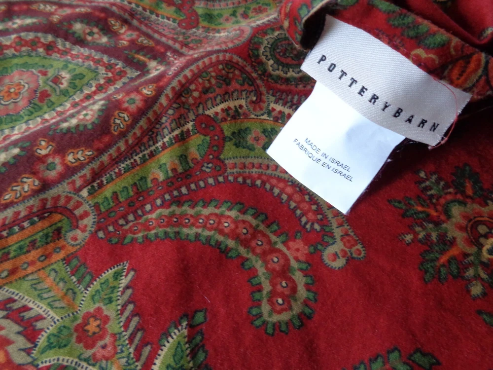 Pottery Barn "Caroline Paisley" full / queen duvet cover - 88 1/2"W x 87"L. Gorgeous coloration of 100% cotton sateen - 350TC. Excellent pre-owned condition. Soaked in OxiClean, laundered and laid flat to dry. Please note picture on my bed, duvet is upside down. The border is along the open end. All questions welcome. Thank you for looking!