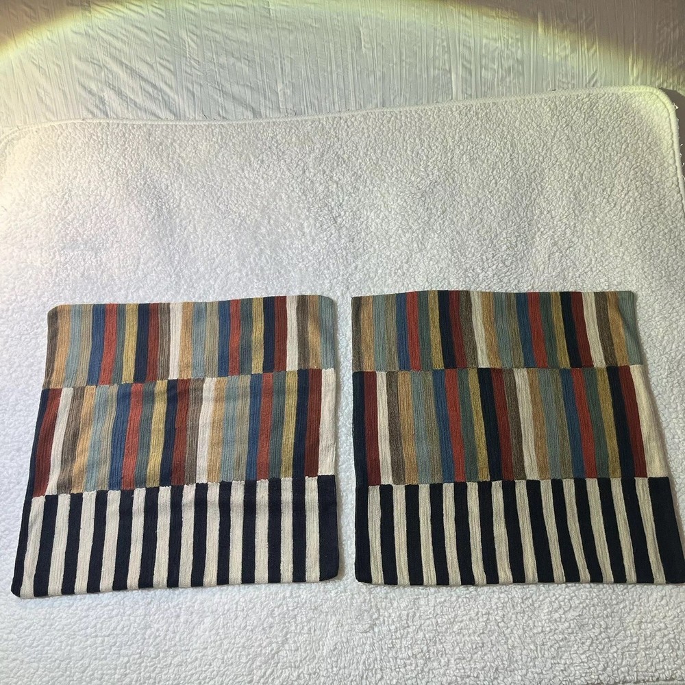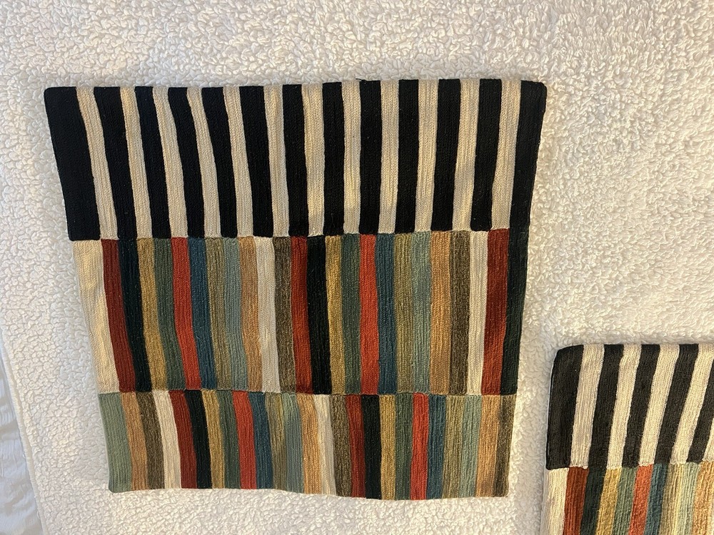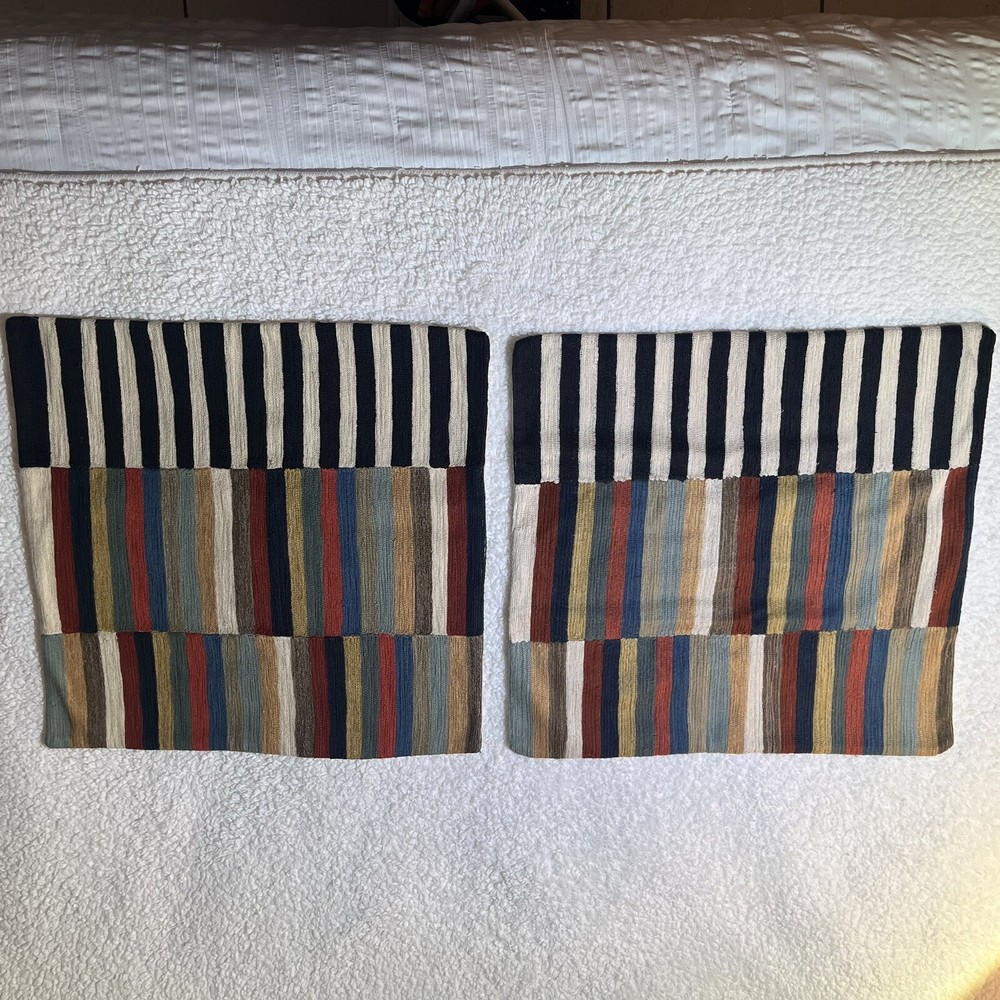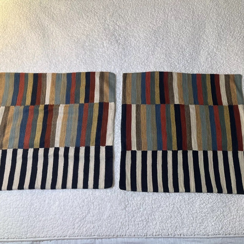 POTTERY BARN Carson Crewel Striped Pillow Covers (PAIR) Approx 24”. Condition is Pre-owned. Shipped with USPS Priority Mail. See all photos for condition....