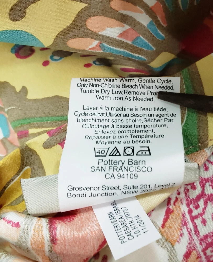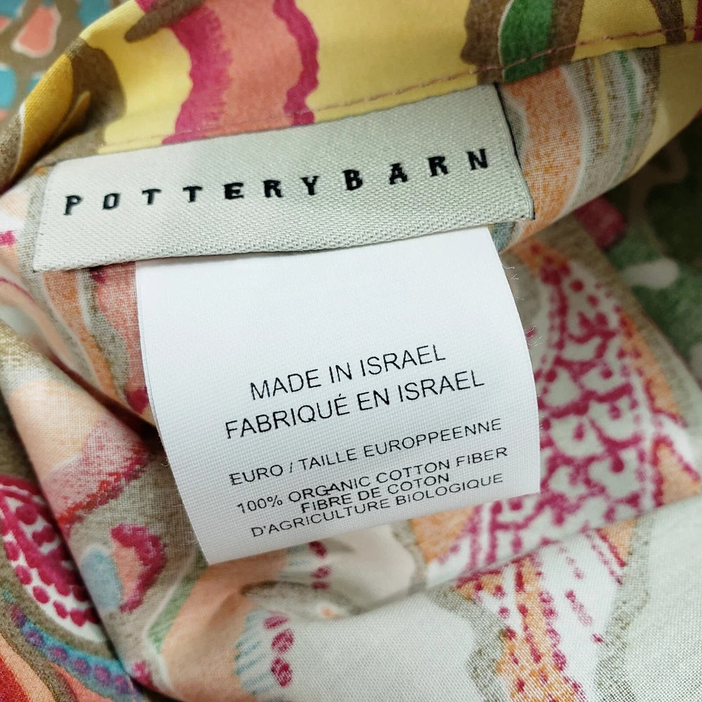 POTTERY BARN (2014) (1) EURO SHAM. Envelope Closure. Colorful Floral Print. 100% Organic Cotton. Machine Wash. Approximate Measurements: Outer 30"×31" Inner Pillow for insert 26.5"×26.5" (pillow insert not included) CONDITION: Pre-owned in Very Nice condition! Measurements Are APPROXIMATE and Taken UNSTRETCHED Laying Flat. PRE-OWNED ITEMS are USED ..... NOT NEW! VINTAGE and Pre-owned items may have signs of wear/pilling, fragrance, and use and are offered AS IS. Traces of age and use are therefore Completely Normal and do NOT Constitute a Defect.We do try to point out any noticeable flaws/blemishes! (Color/Shades/Perception may vary from different screen settings and do not Constitute a Defect.) VIEW ALL PICTURES CAREFULLY...as THEY ARE a PART of the DESCRIPTION for DETAILS and CONDITION. **Instant Payment Required. If you are purchasing more than 1 item, you will receive a Refund for any Overpayment on Shipping after we have combined your purchases. **Please send us a message if you are purchasing multiple items, so that we can wait to create a shipping label! Your POSITIVE FEEDBACK is VERY IMPORTANT to Us. Please EMAIL US with ANY CONCERNS About Your Purchase Prior to Leaving Feedback! THANKS for SUPPORTING our Small Business!