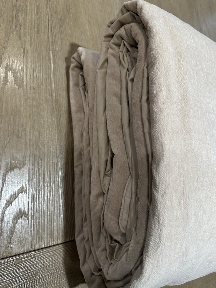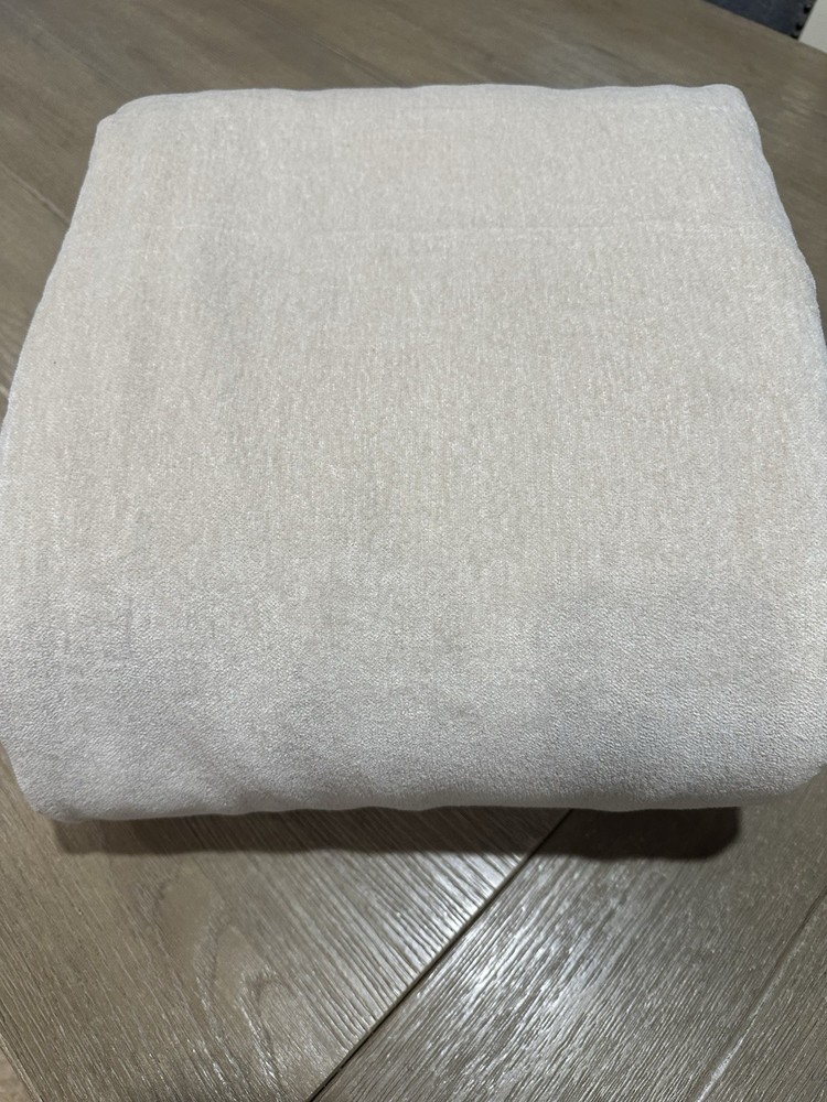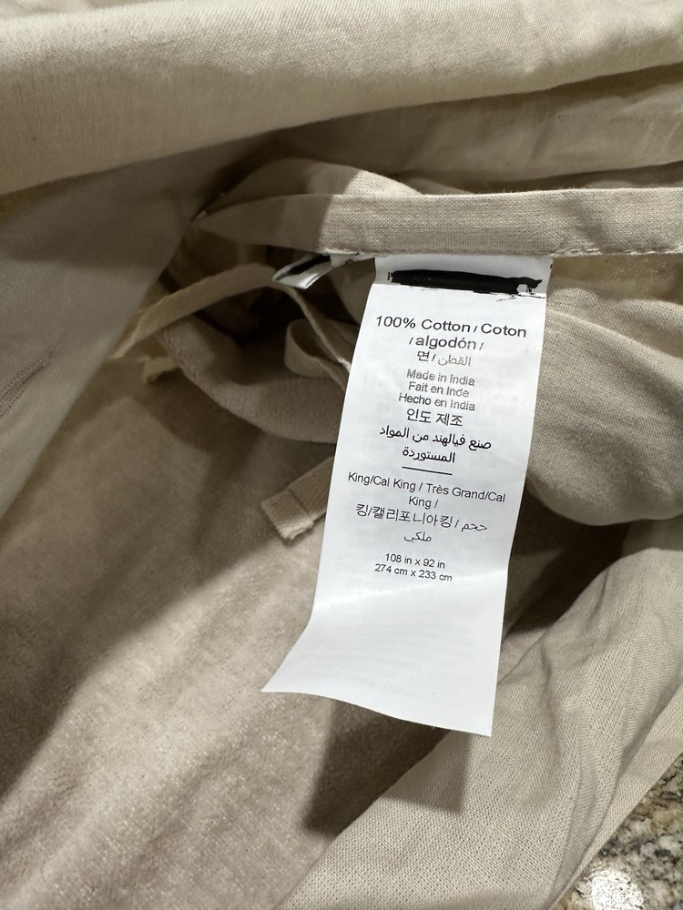 new out of package. attached tags are marked out as shown in the photo's. has a few lines in the fabric located at the bottom right corner. see last picture. they are VERY faint, so if you can't see anything, there isn't much to see. POTTERY BARN Cozy Cloud Duvet Cover color is Oatmeal size is King /Cal King
