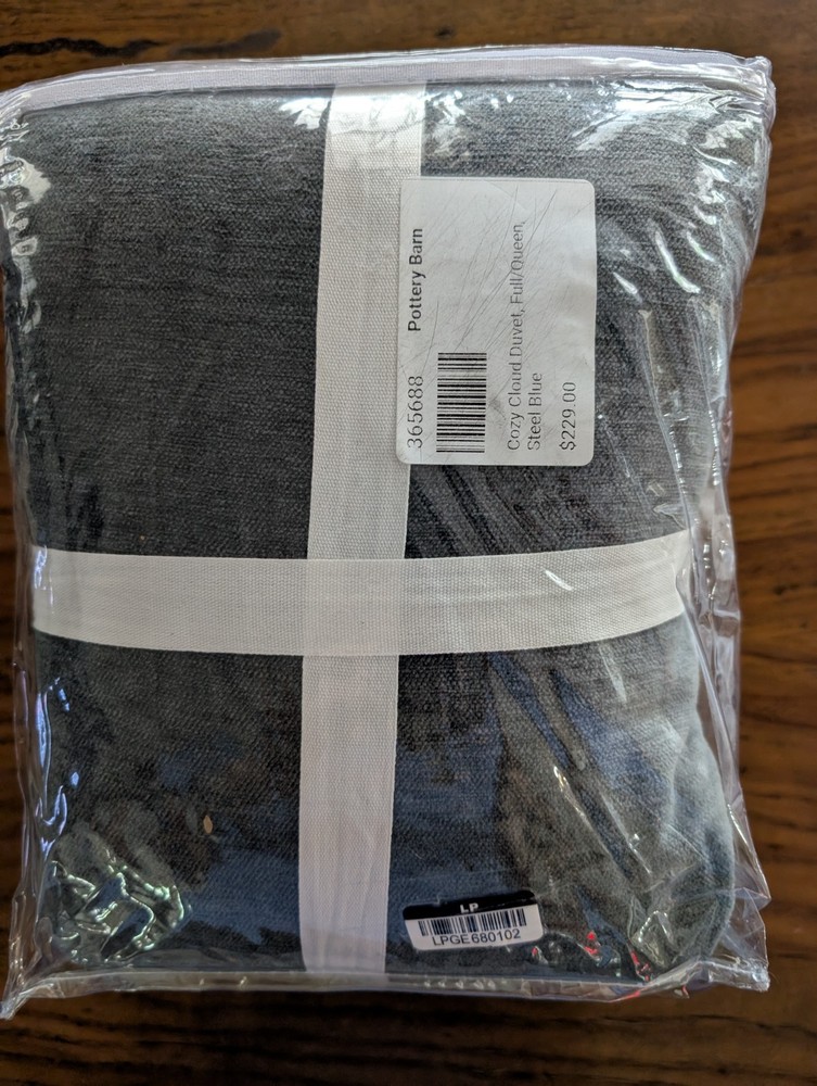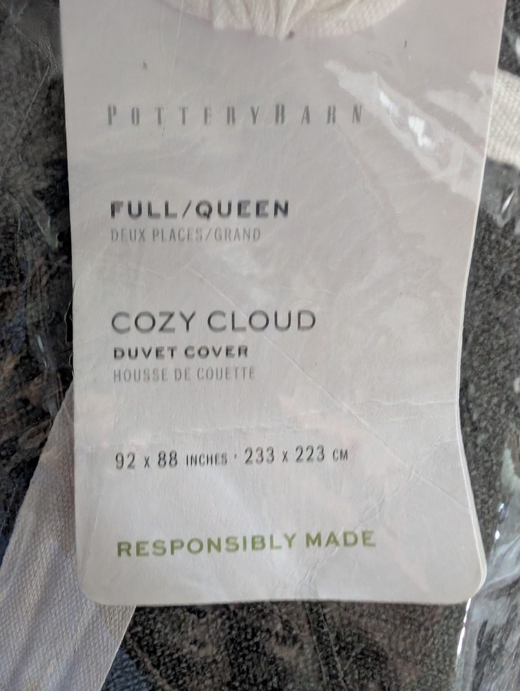 POTTERY BARN Cozy Cloud Duvet-Full/Queen - Steel Blue Made from 100% Cotton Yarn Dyed Chenille; reverses to 100% cotton sheeting. Yarn-dyed fiber has incredibly rich color that holds its vibrancy over time. Reverses to solid. 88x92" SHIPPED FREE!