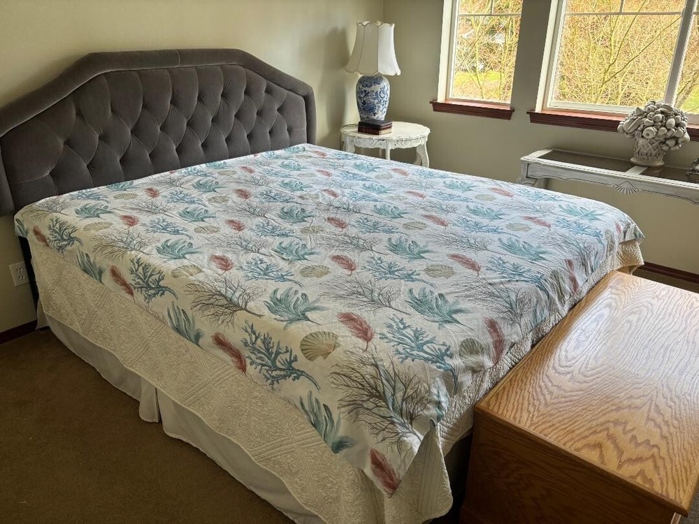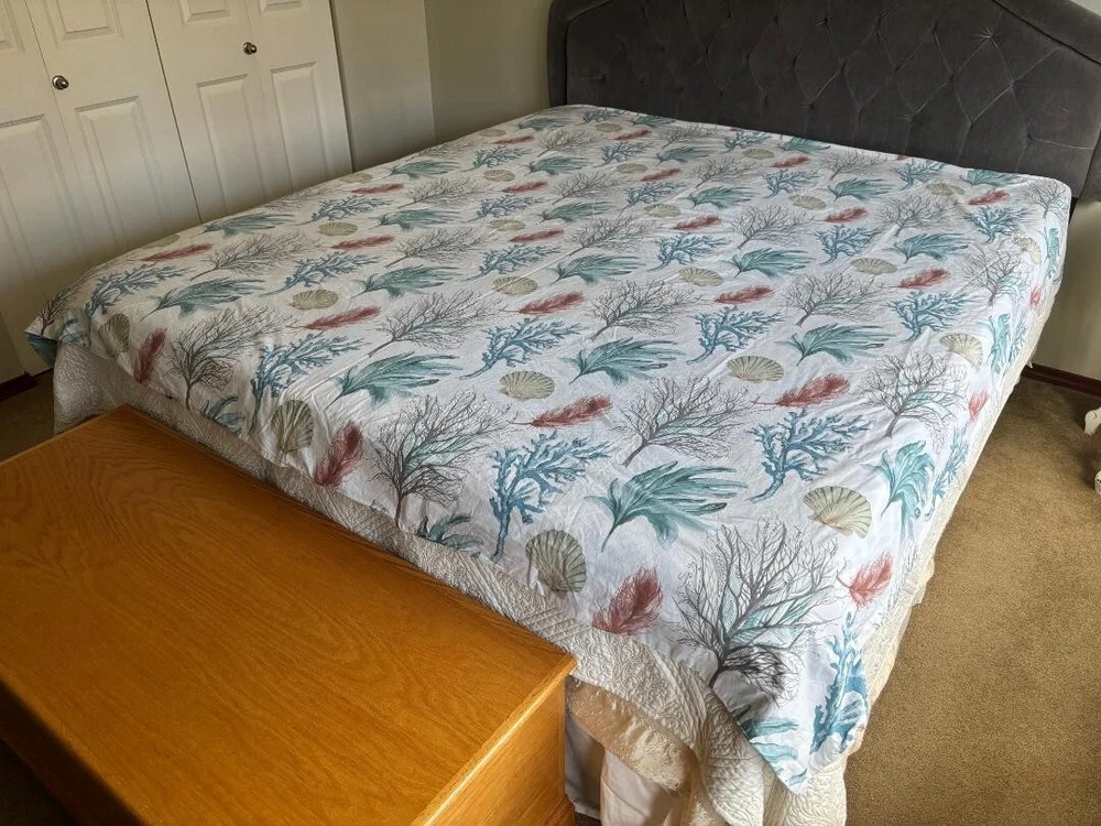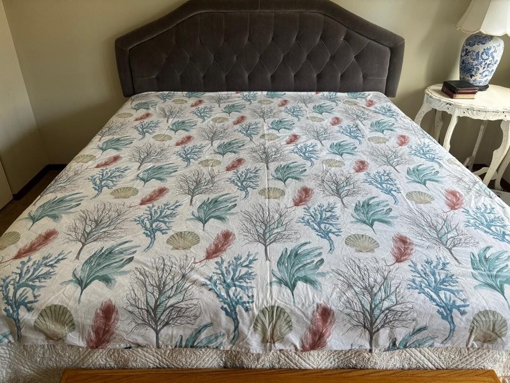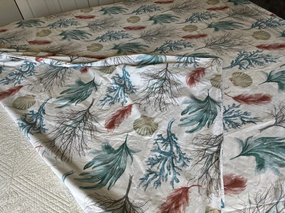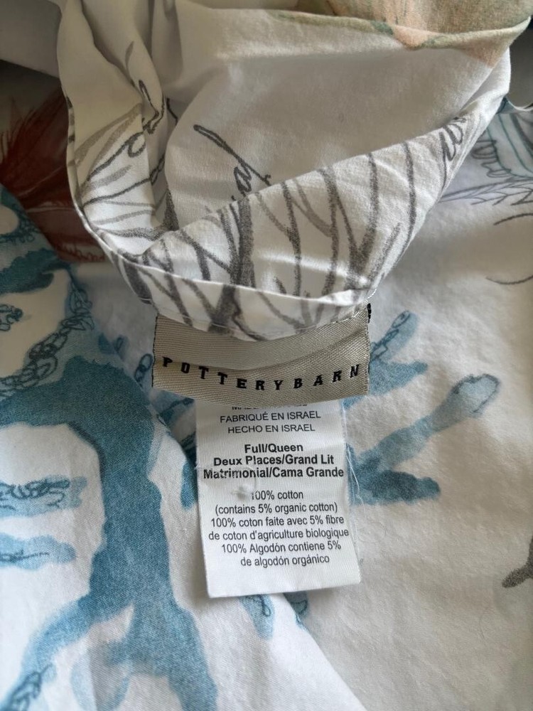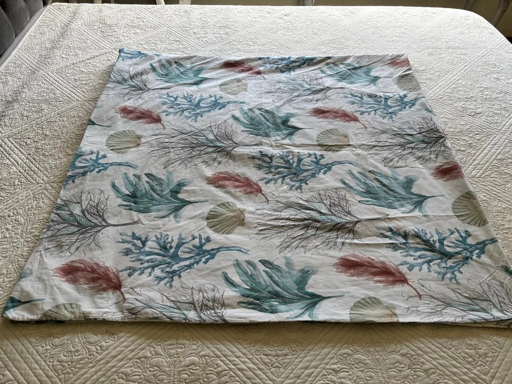 POTTERY BARN DEL MAR COASTAL FULL/QUEEN SEASHELL CORAL DUVET. MEASURES 86" X 86" & HAS TAGS. MINT CONDITION. BIG BUTTONS.