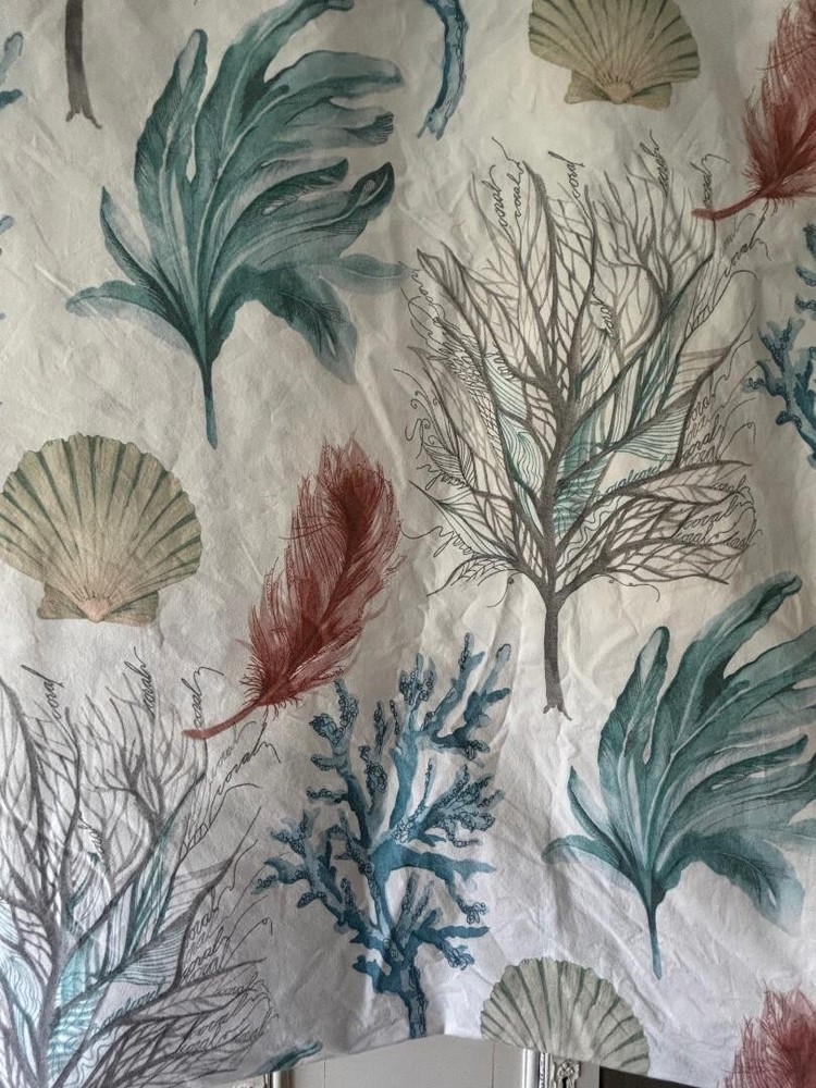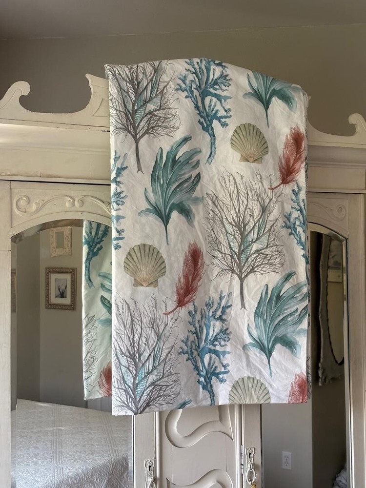 POTTERY BARN DEL MAR COASTAL FULL/QUEEN SEASHELL CORAL DUVET. MEASURES 86" X 86" & HAS TAGS. MINT CONDITION. BIG BUTTONS....