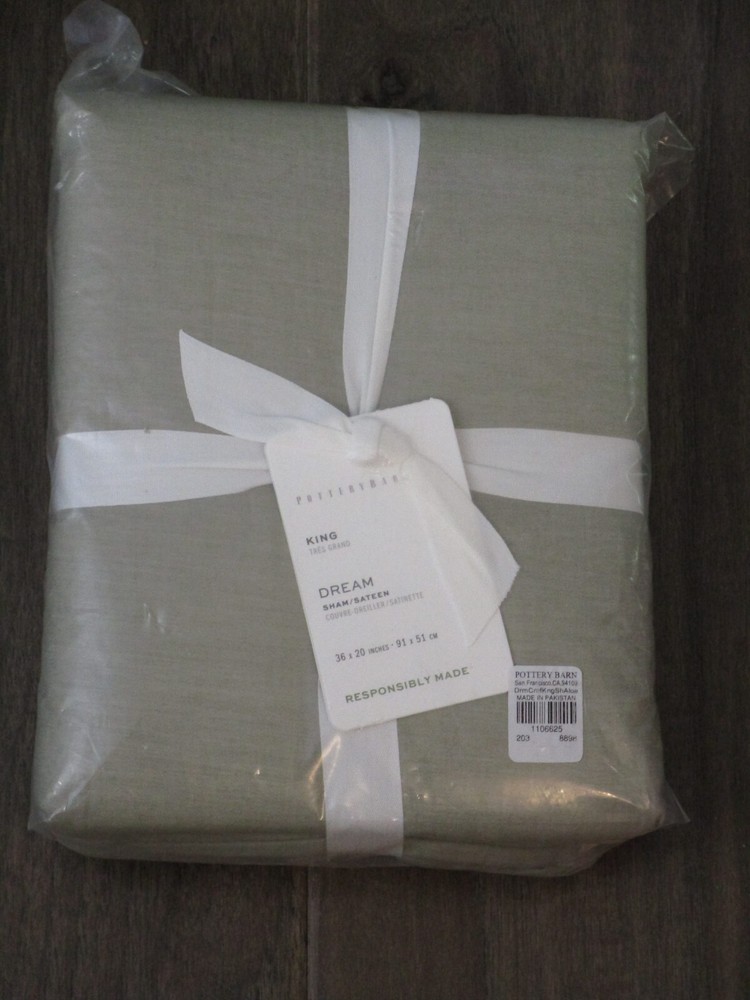 You are looking at a brand new POTTERY BARN DREAM ORGANIC BRUSHED COTTON KING PILLOW SHAM IN ALOE ! Brand new in original packaging. Check out my other domestics and great items in my store. PAYMENT: Buyer must pay within three days of purchase via PayPal. SHIPPING: I will get your item(s) in the mail within one business day following payment. We pride ourselves in getting your merchandise to you quickly! At this time we are not able to ship internationally. CUSTOMER SATISFACTION: We work extremely hard at keeping our 100% feedback rating and we do that by maintaining excellent communication with our customers. If there is a reason for which you feel you cannot rate us at 5 or leave us positive feedback, please contact us so that we have the opportunity to make every transaction a great one! RETURNS: Returns need to be in original packaging in new condition as it was shipped. A 20% restocking fee will be charged for all returns.