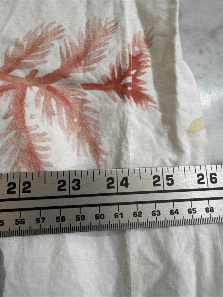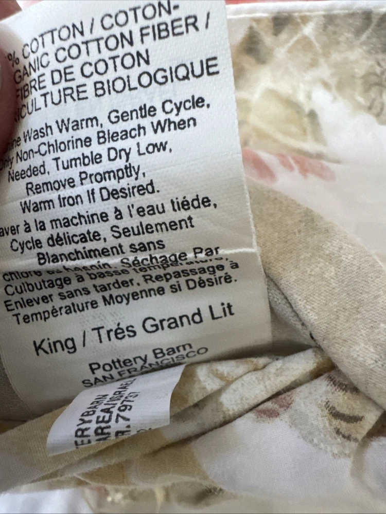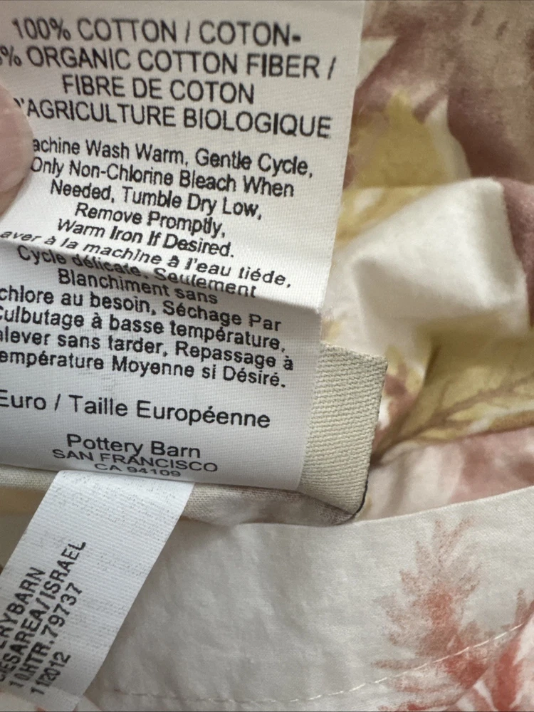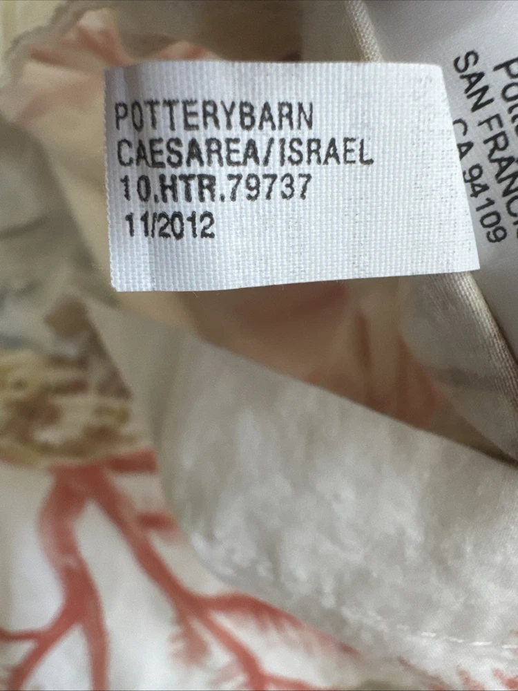 This Pottery Barn duvet cover set features a charming Atlantic Seashells design with a coral, sea, and ocean theme. Made from 100% organic cotton, the set includes a king-sized duvet cover and two Euro shams, all in shades of off white, orange, blue, green, tan, and brown. The set is reversible and has a button closure, making it perfect for teens and adults alike who love a beach, ocean, or nautical style in their bedroom decor. Easy to care for with machine wash and tumble dry instructions, this duvet cover set adds a touch of nature and nautical charm to any bedroom setting.