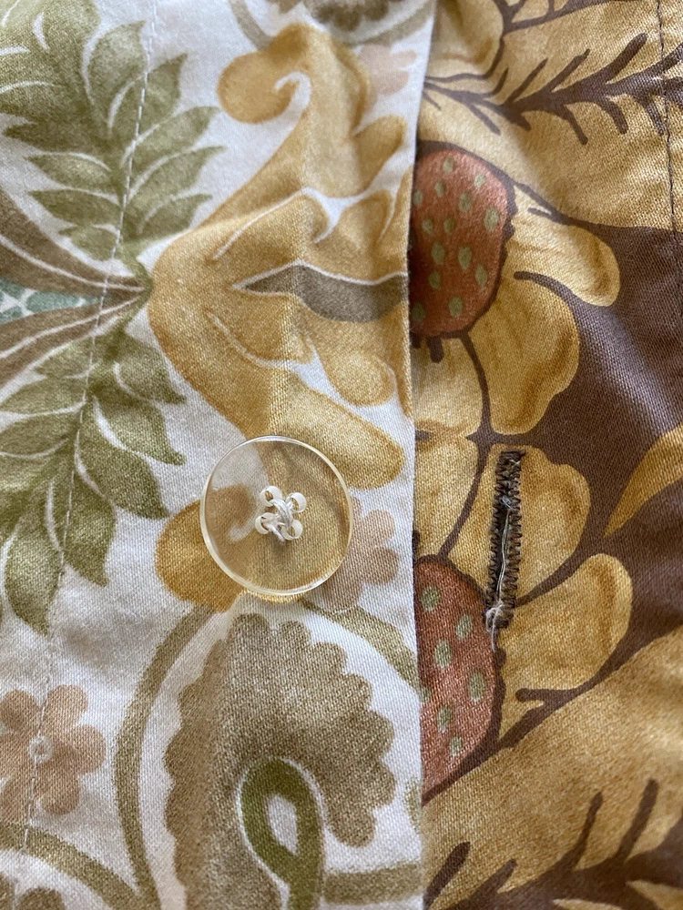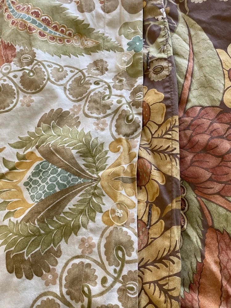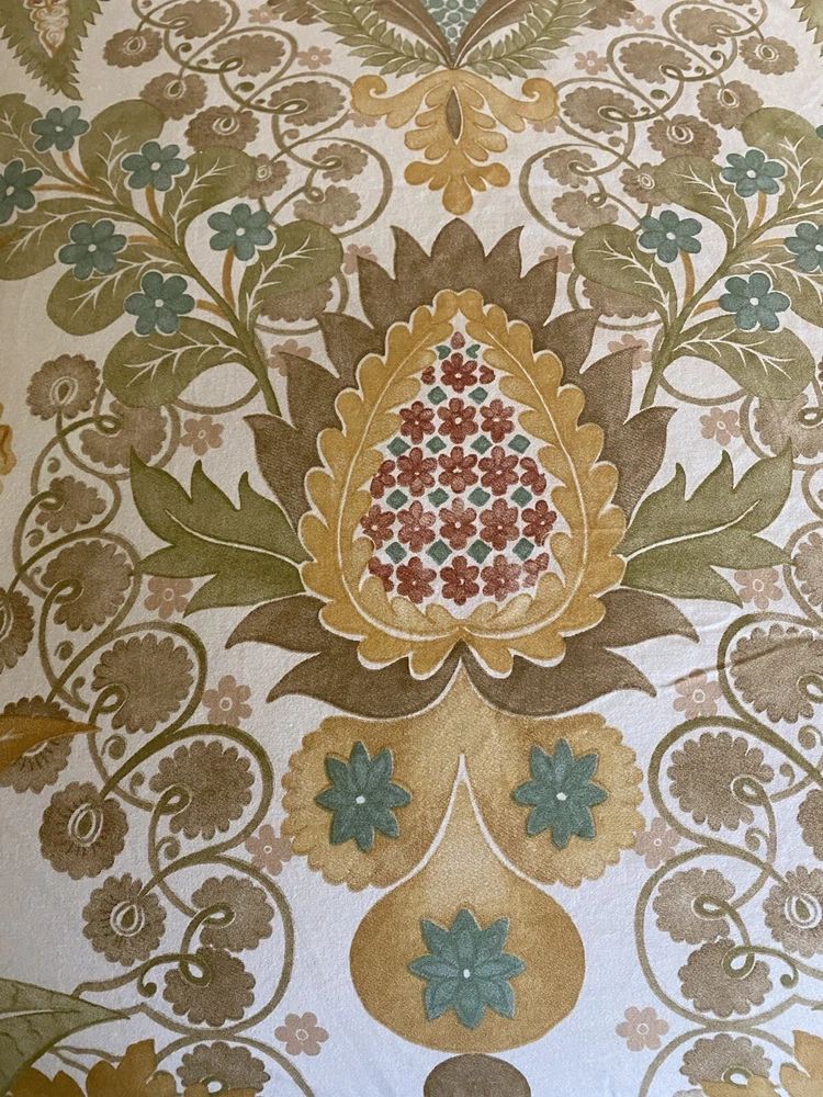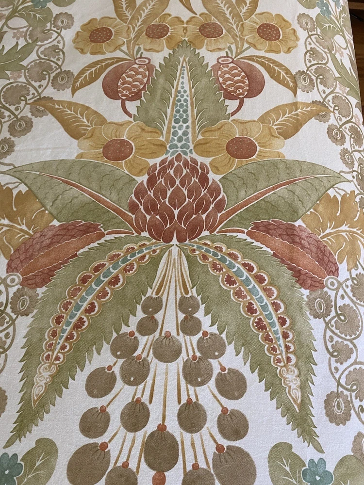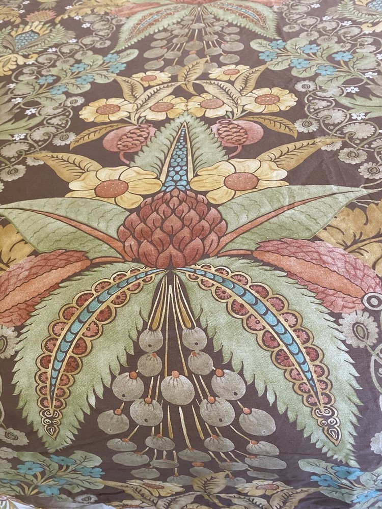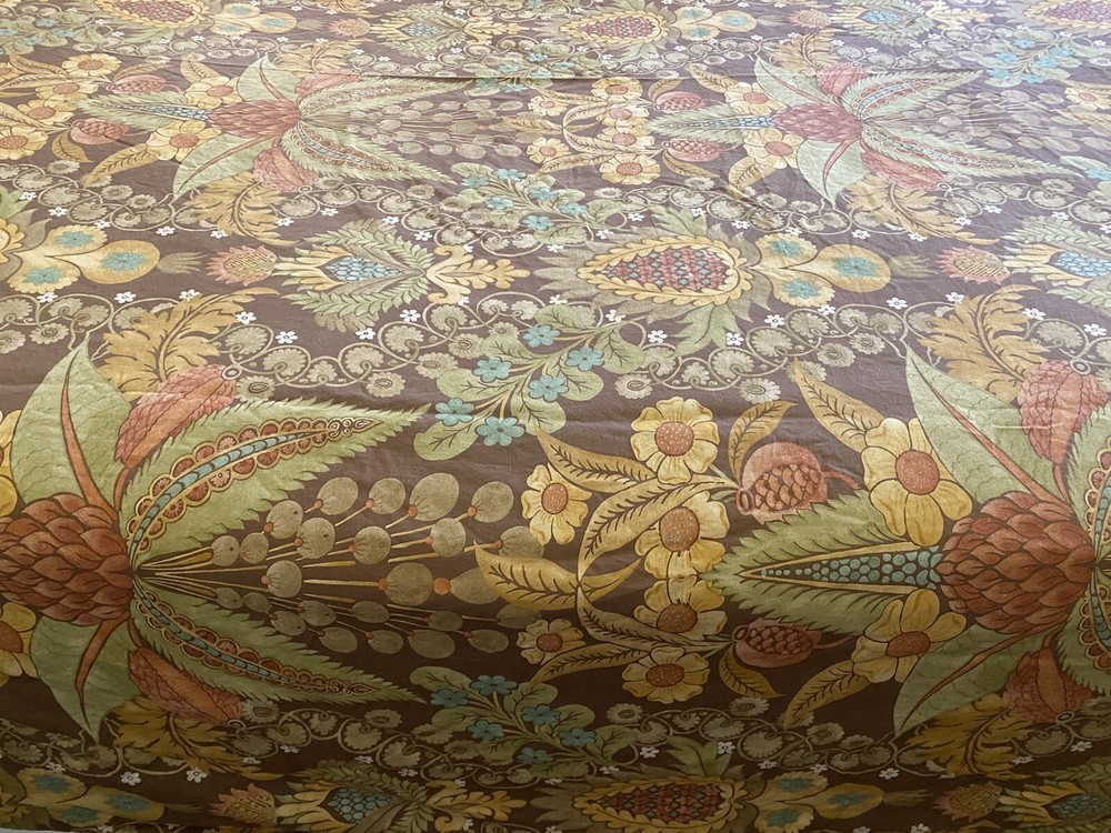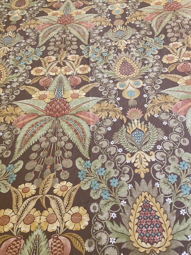 POTTERY BARN Duvet Cover FULL/ QUEEN Cassandra Palampore Reversible 100% Cotton Beautiful cotton sateen duvet Totally reversible with one side has light Brown background and the other has Cream Beige Colors range from Beige, Yellow, rust and olive Green Button closure and inner ties Condition is very good pre-owned Please check pictures