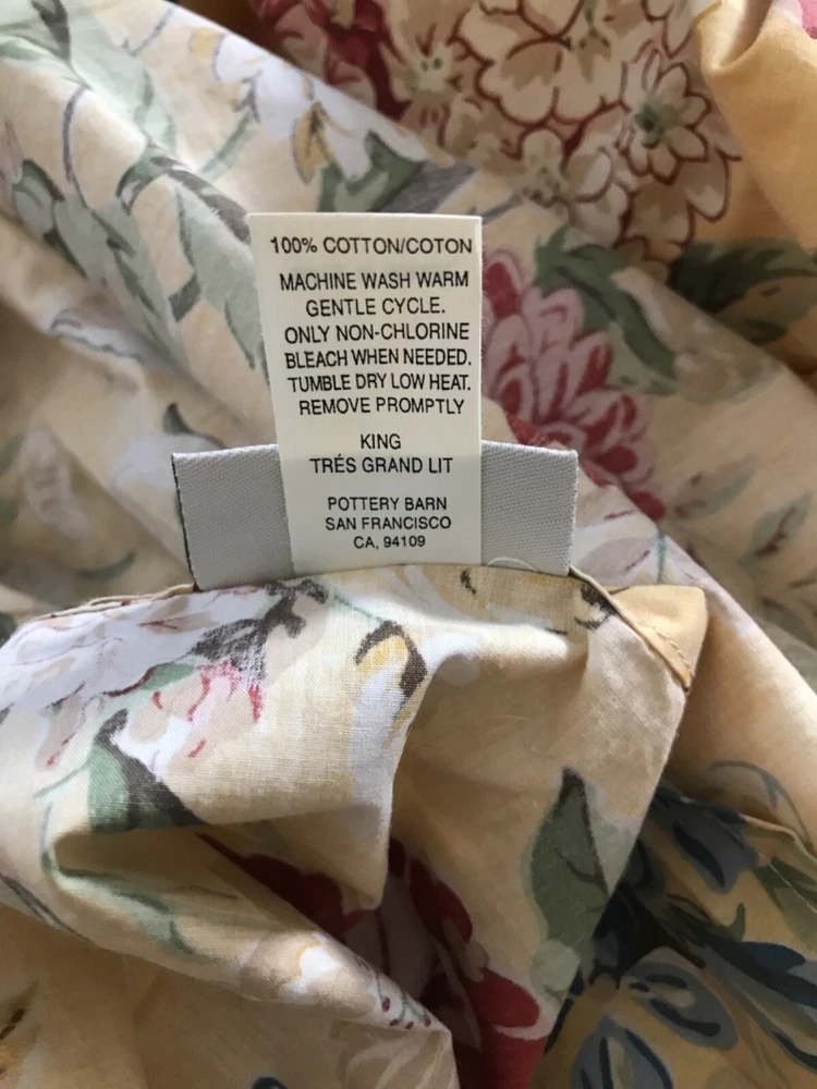 THIS LISTING IS FOR A BEAUTIFUL POTTERY BARN ELODIE 3PC DUVET SET. *EXCELLENT CONDITION 100% COTTON KING DUVET COMFORTER COVER ~ 82" x 96" (THIS COULD PROBABLY BE CONSIDERED A QUEEN) PAIR OF STANDARD SHAMS *Please understand that due to variations in monitors and browsers, colors shown in the listing's picture may appear different on different monitors & devices. Don't hesitate to ask any questions before making your purchase. *All pre-owned bedding should be washed! I do not launder for listings unless mentioned. *All my inventory is stored in a climate controlled, pet free, smoke free space*