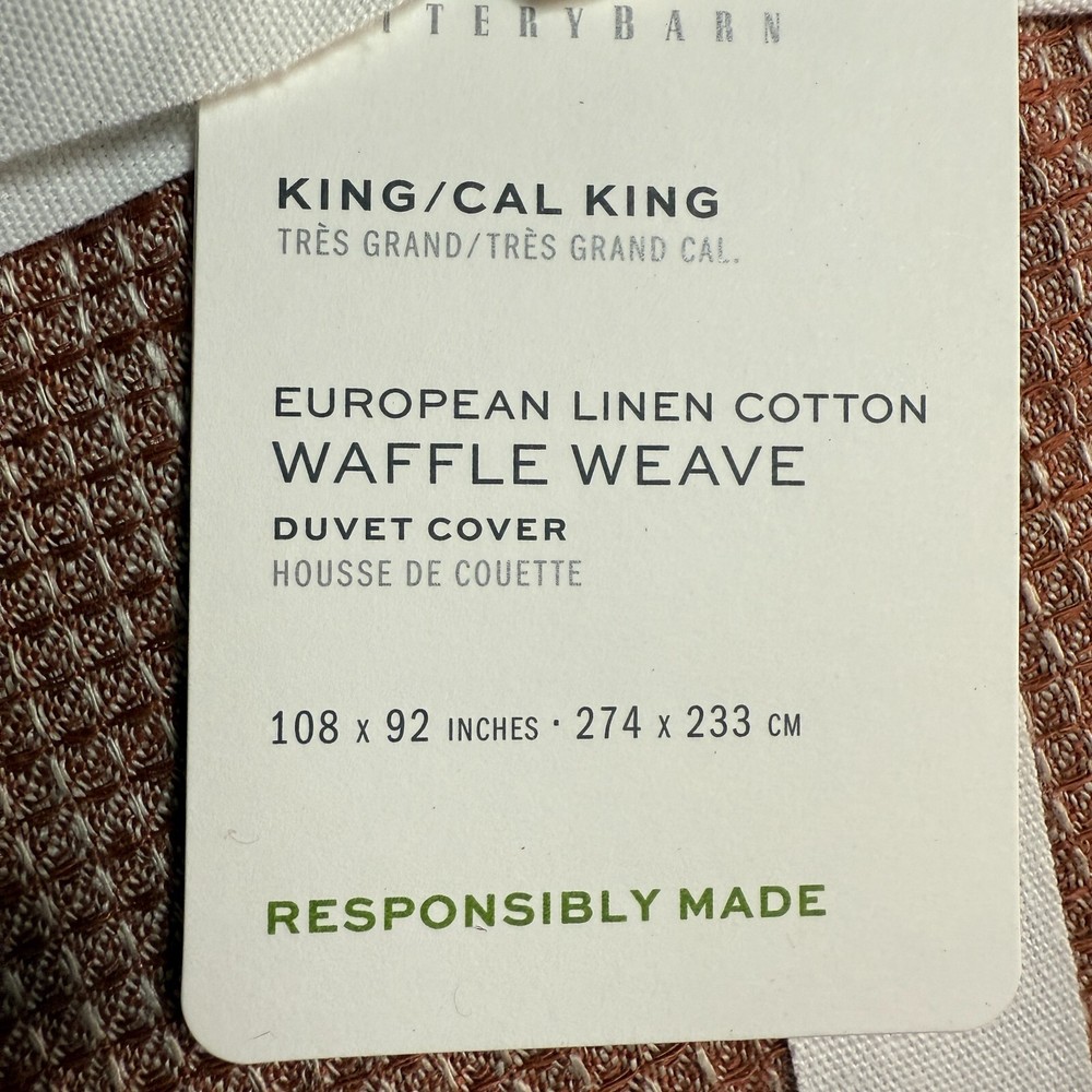Construction Front is woven from 100% European Flax Linen; reverse is 100% cotton. Breathable European flax linen is ideal for warm or cool temperatures and its durability lets you love it for years. Designed with a waffle texture. Soft and cool to the touch. OEKO-TEX® STANDARD 100: tested for 1000+ harmful substances. 14.HUS.42449 HOHENSTEIN HTTI. Duvet features a hidden button closure with inner ties that keep insert in place; sham features an envelope closure. Duvet cover and insert sold separately. Care Linen will get softer with every wash. Machine wash in cold water separately on gentle cycle. Use only non-chlorine bleach, if needed. Line or tumble dry on a low temperature. Dimensions King/Cal. King Duvet: 92" l x 108" w Shipping & handling: Large comforters & quilts are vacuum packed with a reusable storage bag to save shipping cost and preserve the item. Questions: Please reach out. We respond very quickly. We strive for 5-star service in our product quality, shipping speed & customer service. We know you have many choices on eBay and appreciate that you have chosen to shop with us. We have a variety of new and used items for whole family! Please check out our store and be sure to add us as a favorite seller. Zoe's Castle | eBay Stores