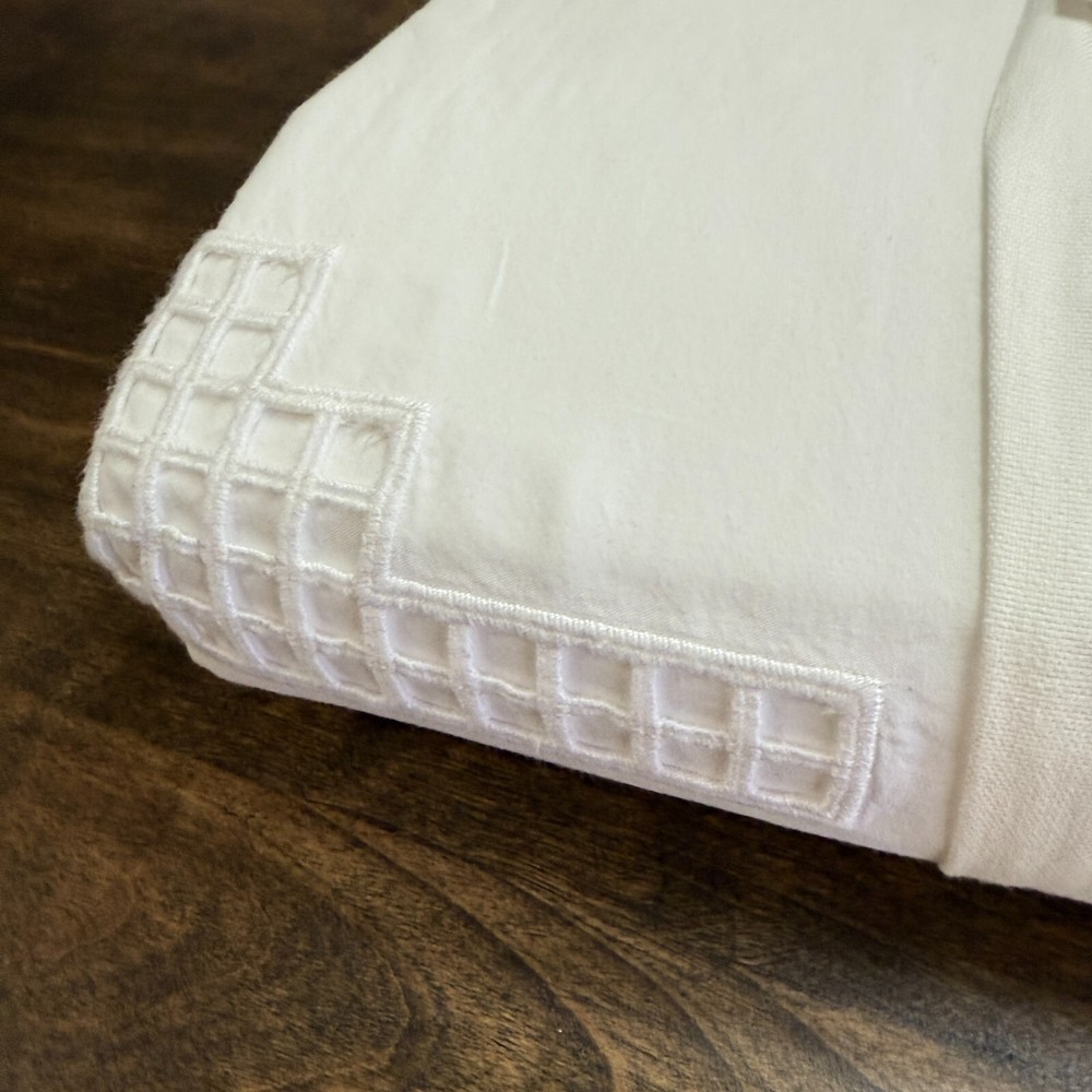 Vintage style gets a modern twist in this beautiful bedding. The classic eyelet detailing has a fresh windowpane design, perfect for adding an extra layer of character to your bed. Made with percale, it has a crisp, tailored look and breathable comfort for year-round enjoyment. Details Material: Made from 100% cotton percale. Reverses to the same. Secure Design: Duvet features a hidden button closure with inner ties to keep insert in place; Components: Duvet cover, shams, and insert sold separately Care Instructions Machine wash in cold water; gentle cycle. Only non-chlorine bleach when needed. Tumble dry on low heat; remove promptly. Warm iron as needed. Dimensions Full/Queen: 88" l x 92" w Shipping & handling: We ship same or next day. Large comforters & quilts are vacuum packed with a reusable storage bag to save shipping cost and preserve the item. Questions: Please reach out. We respond very quickly. We strive for 5-star service in our product quality, shipping speed & customer service. We know you have many choices on eBay and appreciate that you have chosen to shop with us. Zoe's Castle | eBay Stores