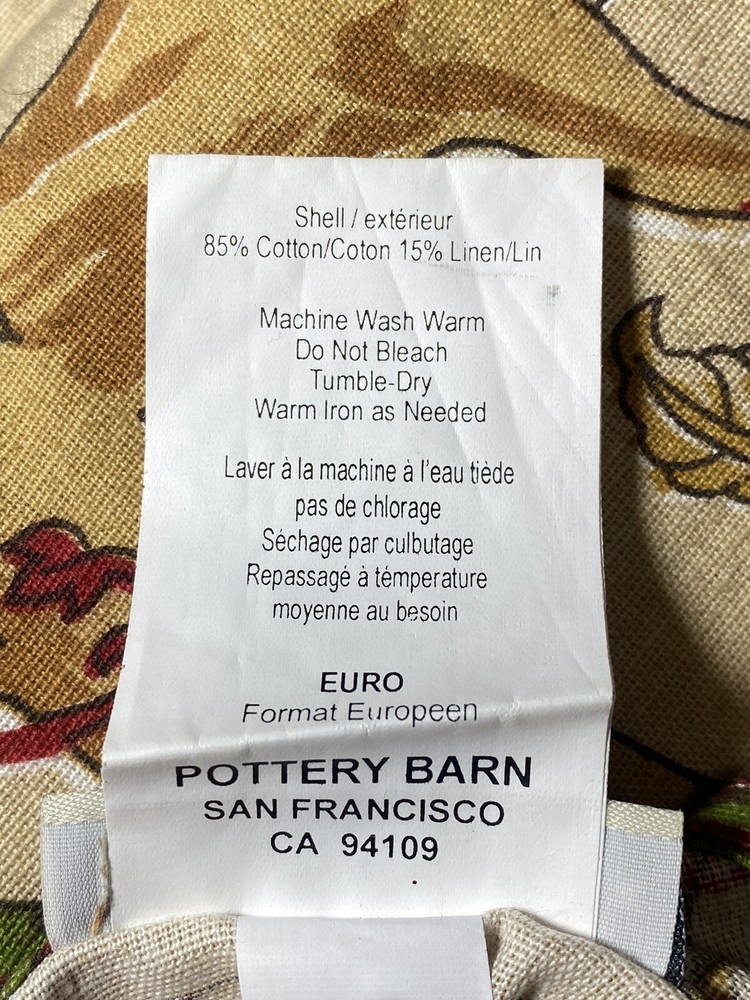 POTTERY BARN Euro Sham Wells PALAMPORE Cotton Linen Blend Bohemian Floral POTTERY BARN Wells PALAMPORE 1 Euro Pillow Sham Cotton Linen Blend Good Condition