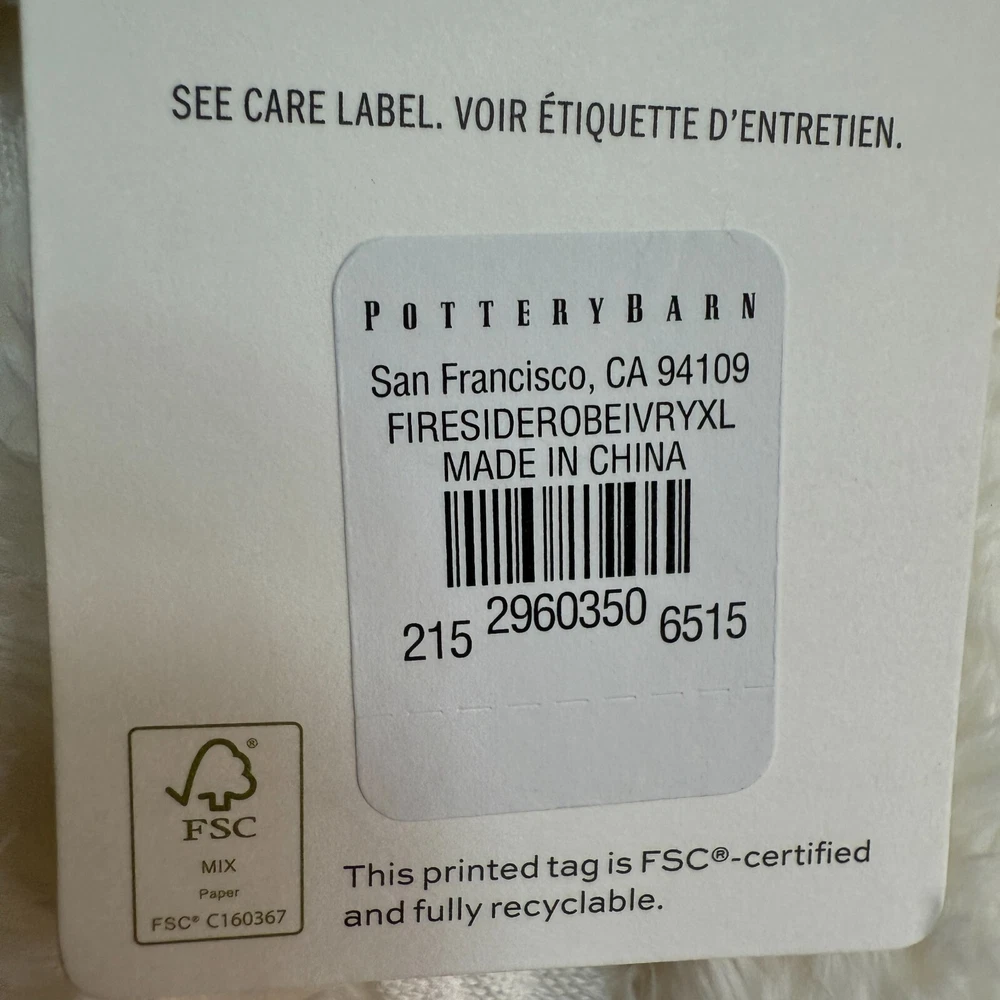 Queue up your favorite movies and light the fire, it doesn’t get more hygge than this. Pottery Barn took one of their most-loved throws and created a wearable version. Crafted of PB's softest sherpa, this robe takes lounging to the next level. Construction Made of 100% polyester. OEKO-TEX® STANDARD 100: tested for 1000+ harmful substances to keep you and your family safe. 14.HUS.42449 HOHENSTEIN HTTI. Unisex Small, Medium, Large and Extra Large. Care Machine wash in cold water; gentle cycle. Use non-chlorine bleach when needed. Tumble dry on low heat. UNISEX SIZE GUIDE WOMENS DRESS SIZES S = 4-6 M = 8-10 L = 12-14 XL = 16-18 MENS SHIRT SIZES S = 35-37 M = 38-40 L = 42-44 XL = 46-48 Shipping & handling: Large comforters & quilts are vacuum packed with a reusable storage bag to save shipping cost and preserve the item. Questions: Please reach out. We respond very quickly. We strive for 5-star service in our product quality, shipping speed & customer service. We know you have many choices on eBay and appreciate that you have chosen to shop with us. We have a variety of new and used items for whole family! Please check out our store and be sure to add us as a favorite seller. Zoe's Castle | eBay Stores
