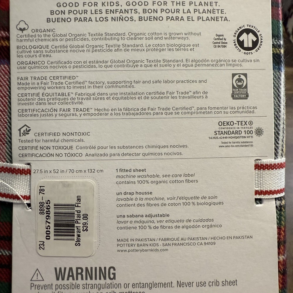 Lend a classic look to the nursery with our flannel fitted sheet. Printed in timeless Yuletide red and green, it’s crafted of pure, cotton for superior breathability, softness and a better night’s sleep. DETAILS THAT MATTER Made of 100% organic cotton printed flannel. 170-gram weight. Made in a Fair Trade Certified™ factory, supporting fair and safe labor practices and empowering workers to invest in their communities. DIMENSIONS Crib Fitted Sheet: 27.5" wide x 52" long Sheet fits mattress up to 10" deep CARE Wash before first use. Machine wash in warm water; gentle cycle. Use only non-chlorine bleach, if needed. Tumble dry on low heat; remove promptly. Warm iron as needed. Shipping & handling: We ship same or next day. Large comforters & quilts are vacuum packed with a reusable storage bag to save shipping cost and preserve the item. Questions: Please reach out. We respond very quickly. We strive for 5-star service in our product quality, shipping speed & customer service. We know you have many choices on eBay and appreciate that you have chosen to shop with us. Zoe's Castle | eBay Stores