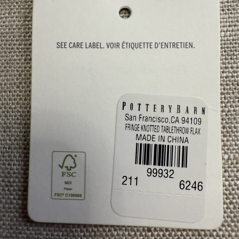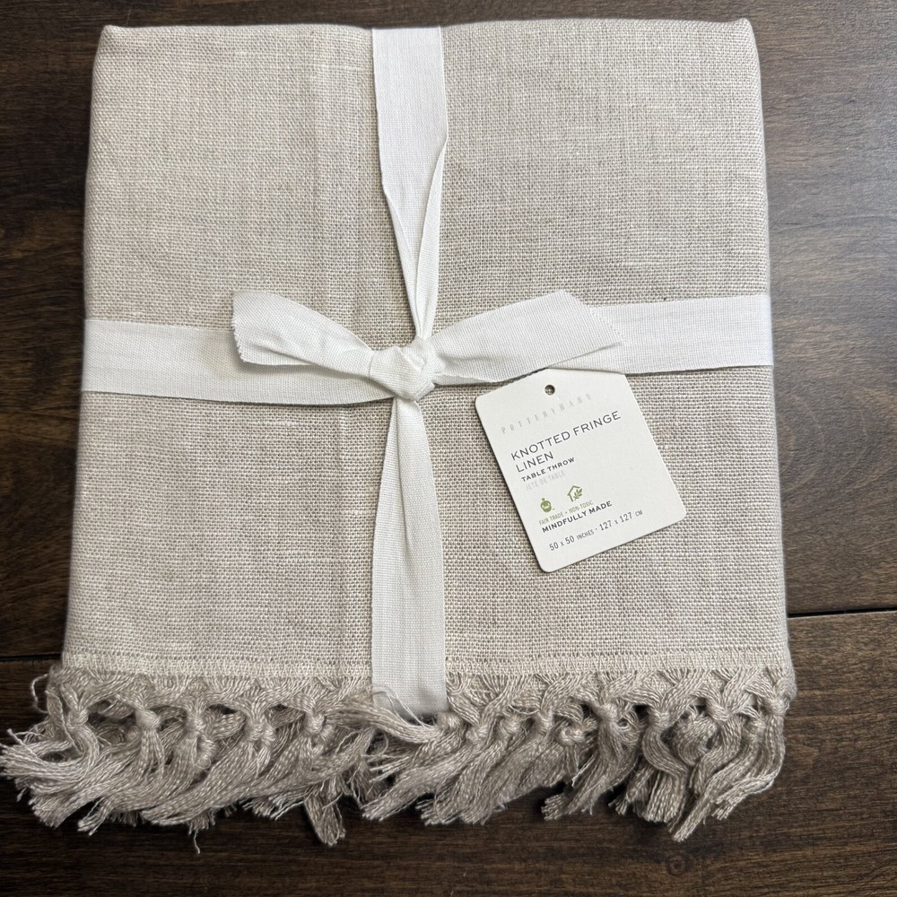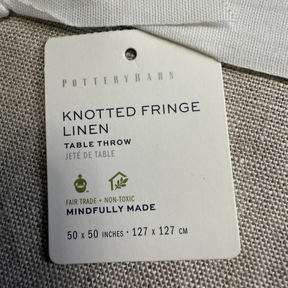 Pottery Barn Fringe Knotted Table Throw Start with the basics. This table throw is a softly texture neutral with a carefully hand-knotted fringe for beautiful style year-round. Made of 100% linen Machine wash, tumble dry Fringe on two sides 50" x 50" square Shipping & handling: We ship same or next day. Large comforters & quilts are vacuum packed with a reusable storage bag to save shipping cost and preserve the item. Questions: Please reach out. We respond very quickly. We strive for 5-star service in our product quality, shipping speed & customer service. We know you have many choices on eBay and appreciate that you have chosen to shop with us. Zoe's Castle | eBay Stores
