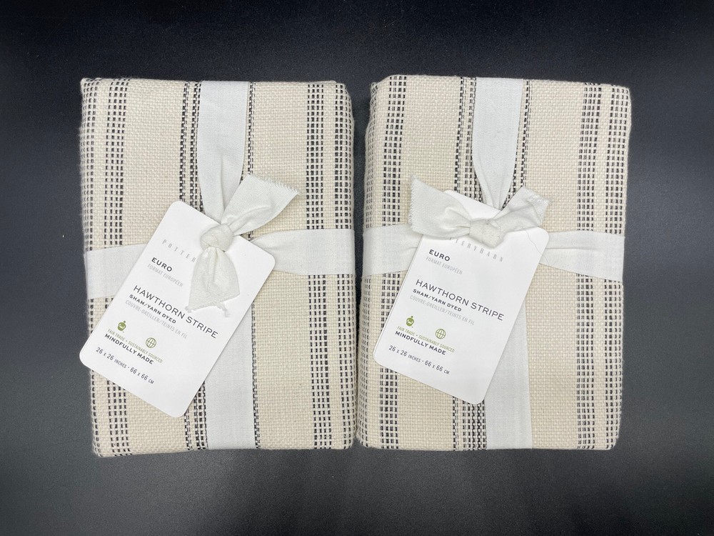 Pottery Barn Hawthorn Stripe Duvet & Shams Duvet: Full / Queen 2 Euro Shams Color: Charcoal Brand new, mint condition, with tags, smoke free & pet free home. Please visit their website for more detail...