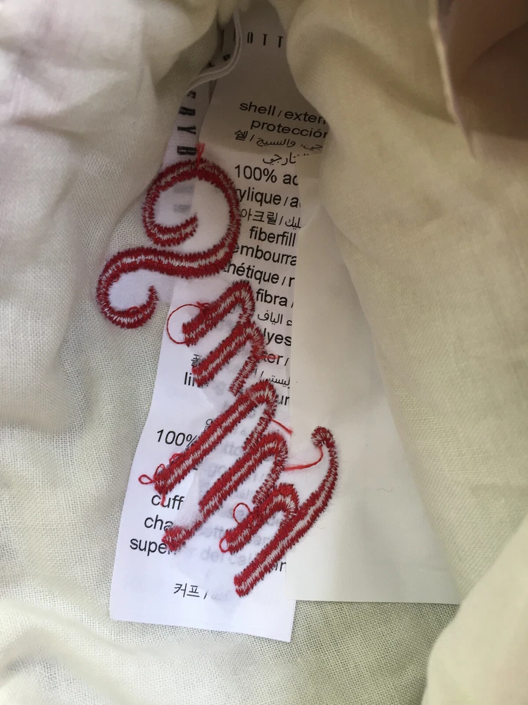 Dry clean only See pictures for actual size against a ruler Item pictured is actual item you will receive. Please note closeup of monogram pictured, some of my inventory have minor flaws to monogram. This was part of Pottery Barn inventory that was either a return, cancelled order, misprint mono or floor sample. Please check the condition noted above in listing. I try to detail everything there that I notice. All items in my inventory are either no flaws or minor flaws and many are missing tags and have black marks through tag. I accept returns for any reason. message me if you have any other questions or need additional pics. smoke free home.