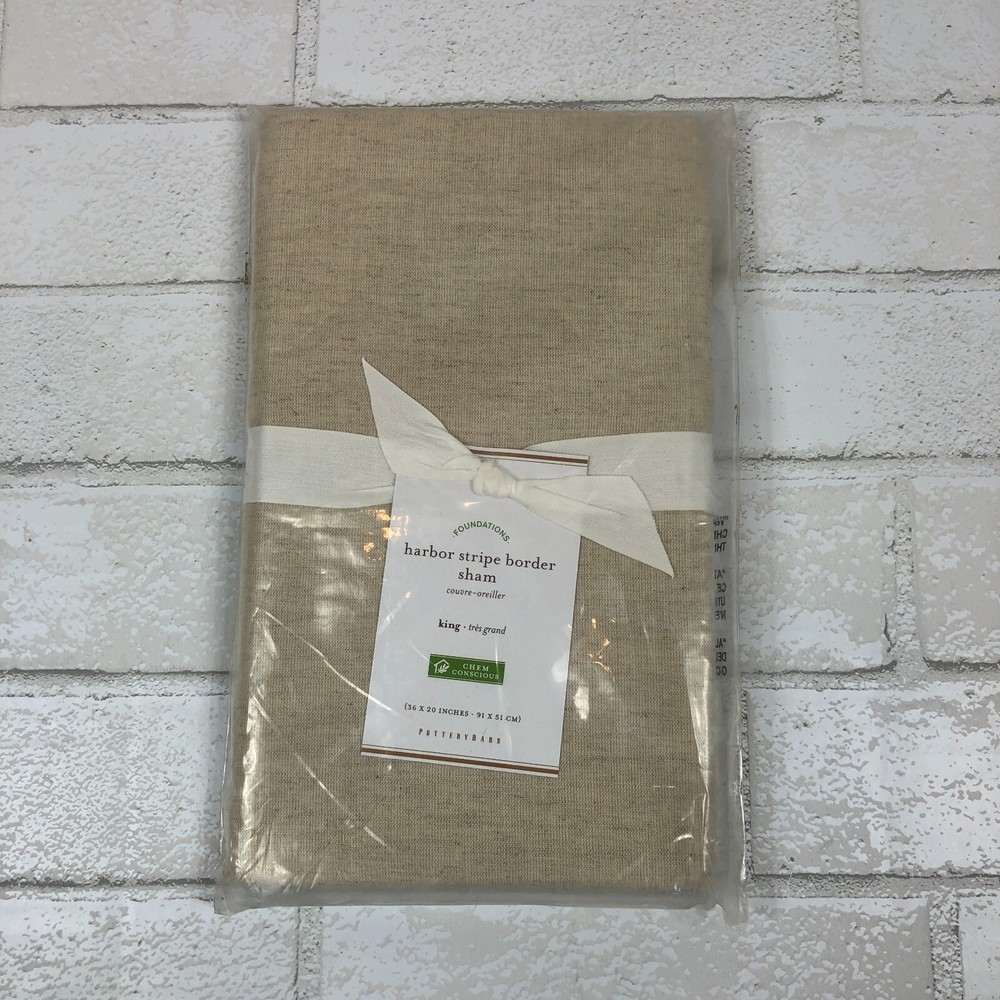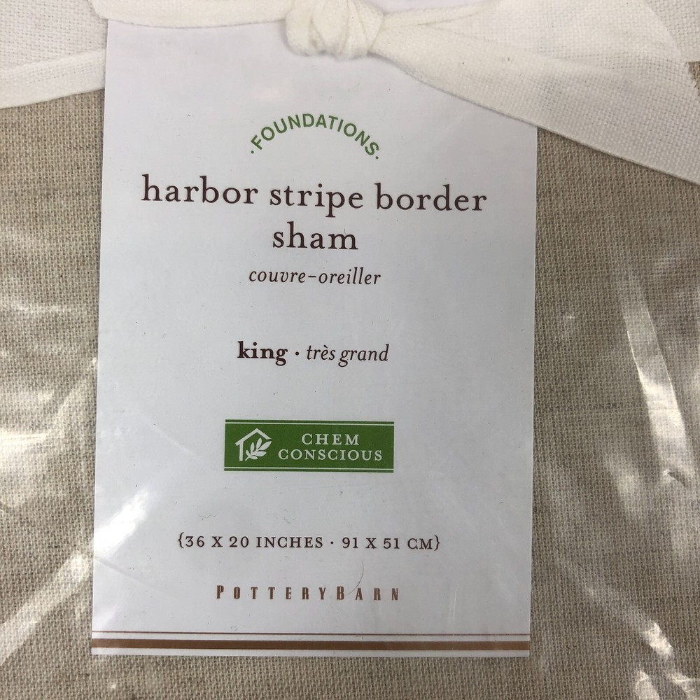 POTTERY BARN Harbor Stripe Border KING Sham 36" x 20" 1 Standard Sham Blue Red White Turquoise Hem 75% ORGANIC COTTON 25% LINEN Kansas City 6215...