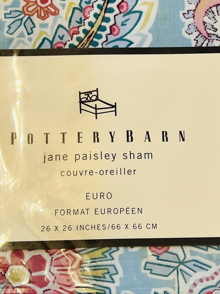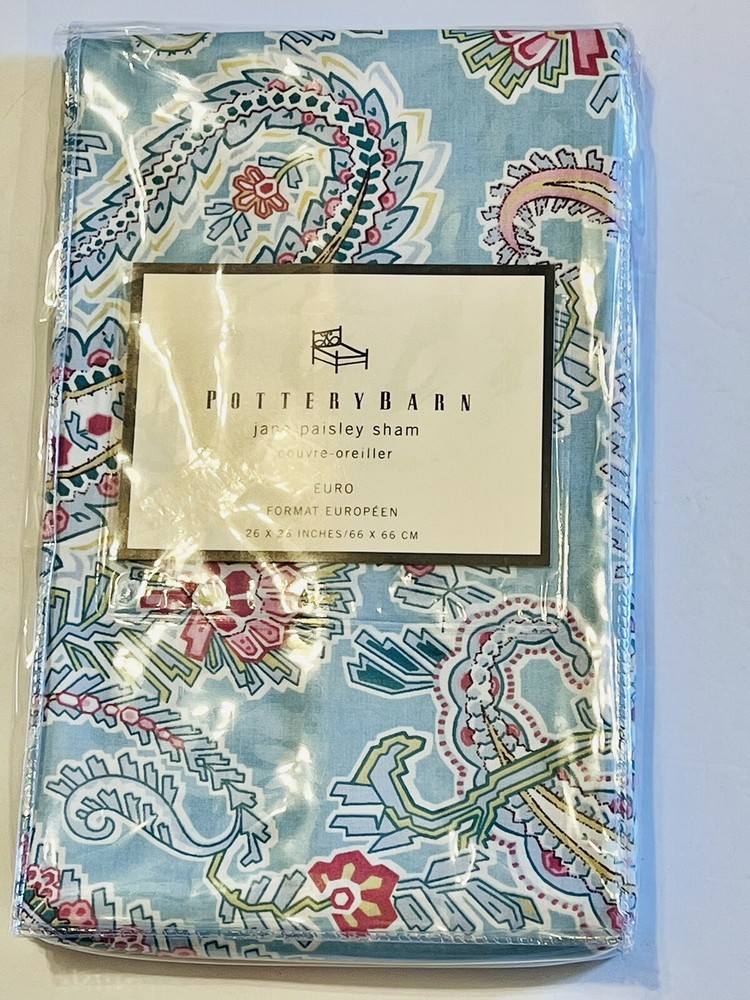 POTTERY BARN JANE PAISLEY Euro pillow sham. One sham only. The sham is blue paisley. Measures 26” x 26” New in sealed package. Smoke free home.