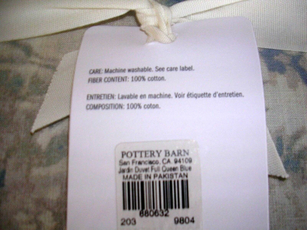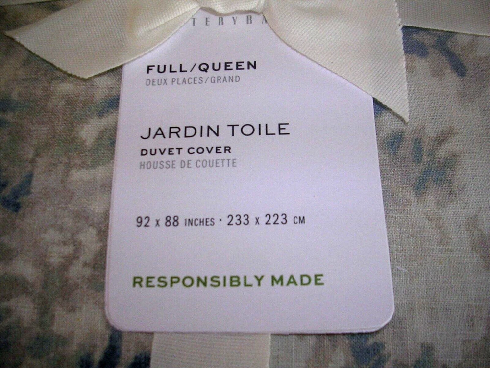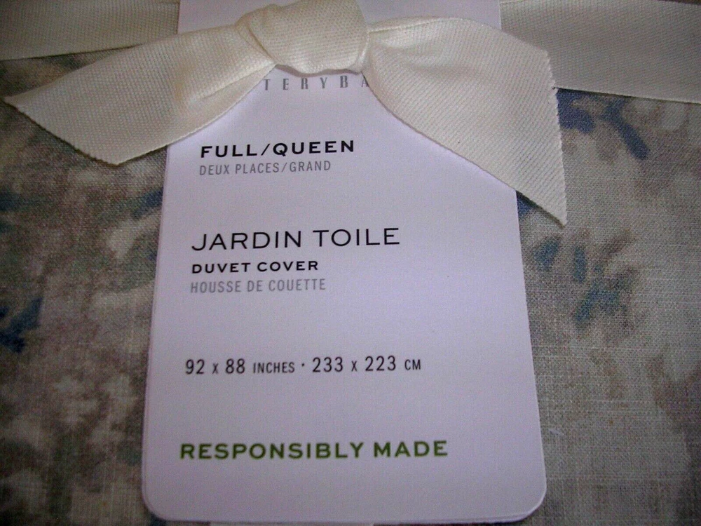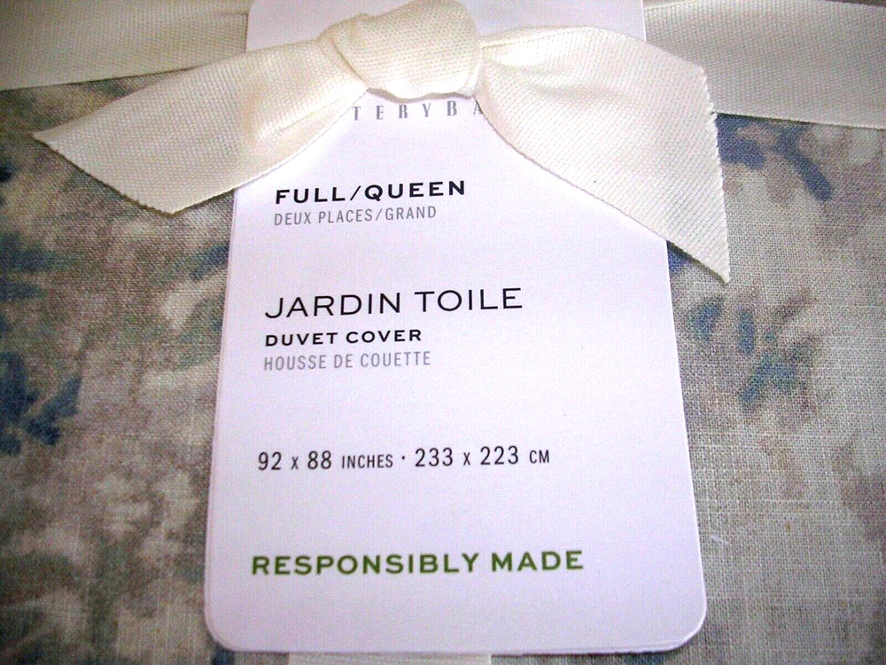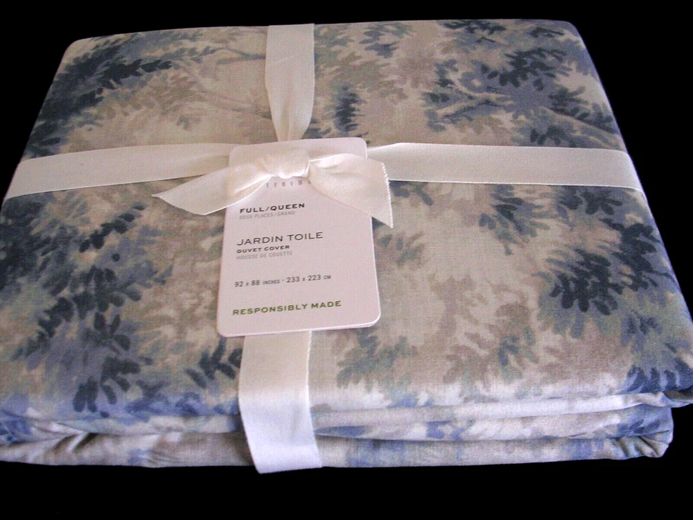 POTTERY BARN FULL/QUEEN JARDIN TOILE DUVET COVER MEASURING 92 X 88 INCHES, 100% COTTON AND NEW WITH TAGS.