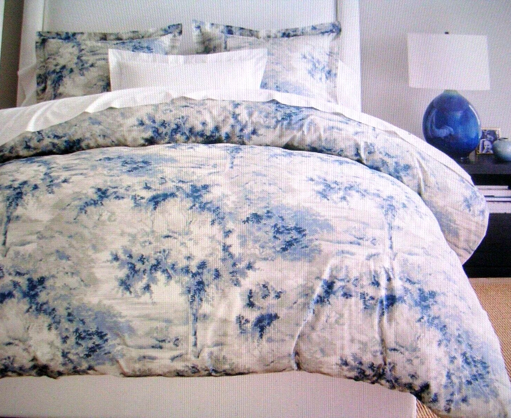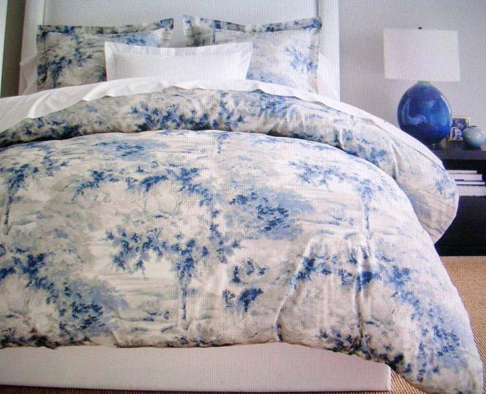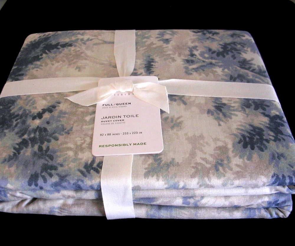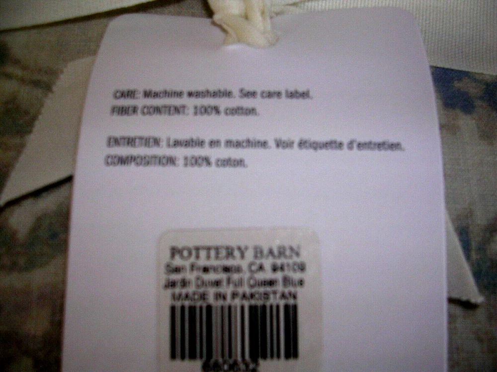 POTTERY BARN FULL/QUEEN JARDIN TOILE DUVET COVER MEASURING 92 X 88 INCHES, 100% COTTON AND NEW WITH TAGS.