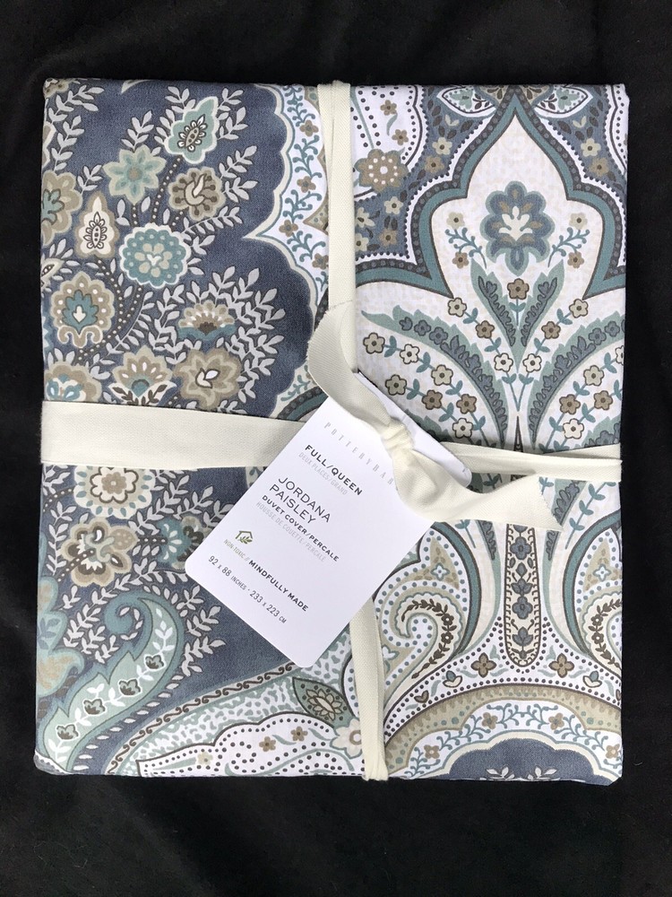 Pottery Barn Jordana Duvet & Shams Duvet: Full / Queen 2 Euro Shams Color: Blue Brand new, mint condition, with tags, smoke free & pet free home. Please visit their website for more detailed photos of the color Please make note of the different tag on the duvet and 1 of the shams. Retail: $280