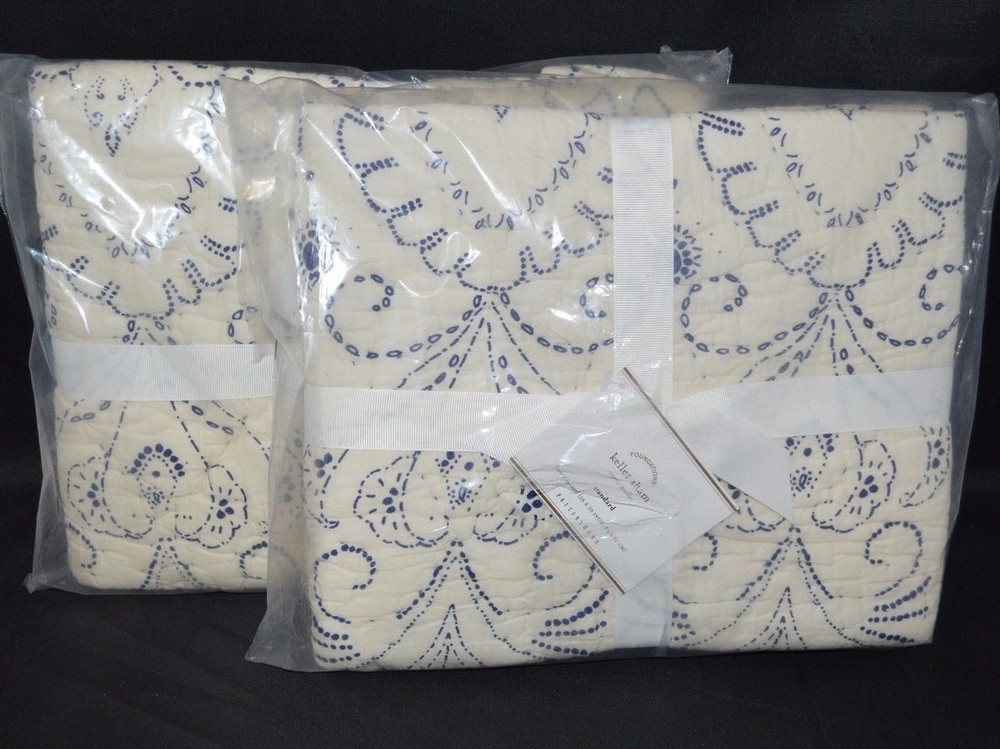 POTTERY BARN KELLER STITCHED STANDARD SHAMS NAVY NEW SET OF 2 ITEMS ARE BRAND NEW IN PACKAGE YOU ARE BUYING 2 SHAMS SIZE: STANDARD COLOR: WHITE AND NAVY 100% COTTON MACHINE WASHABLE