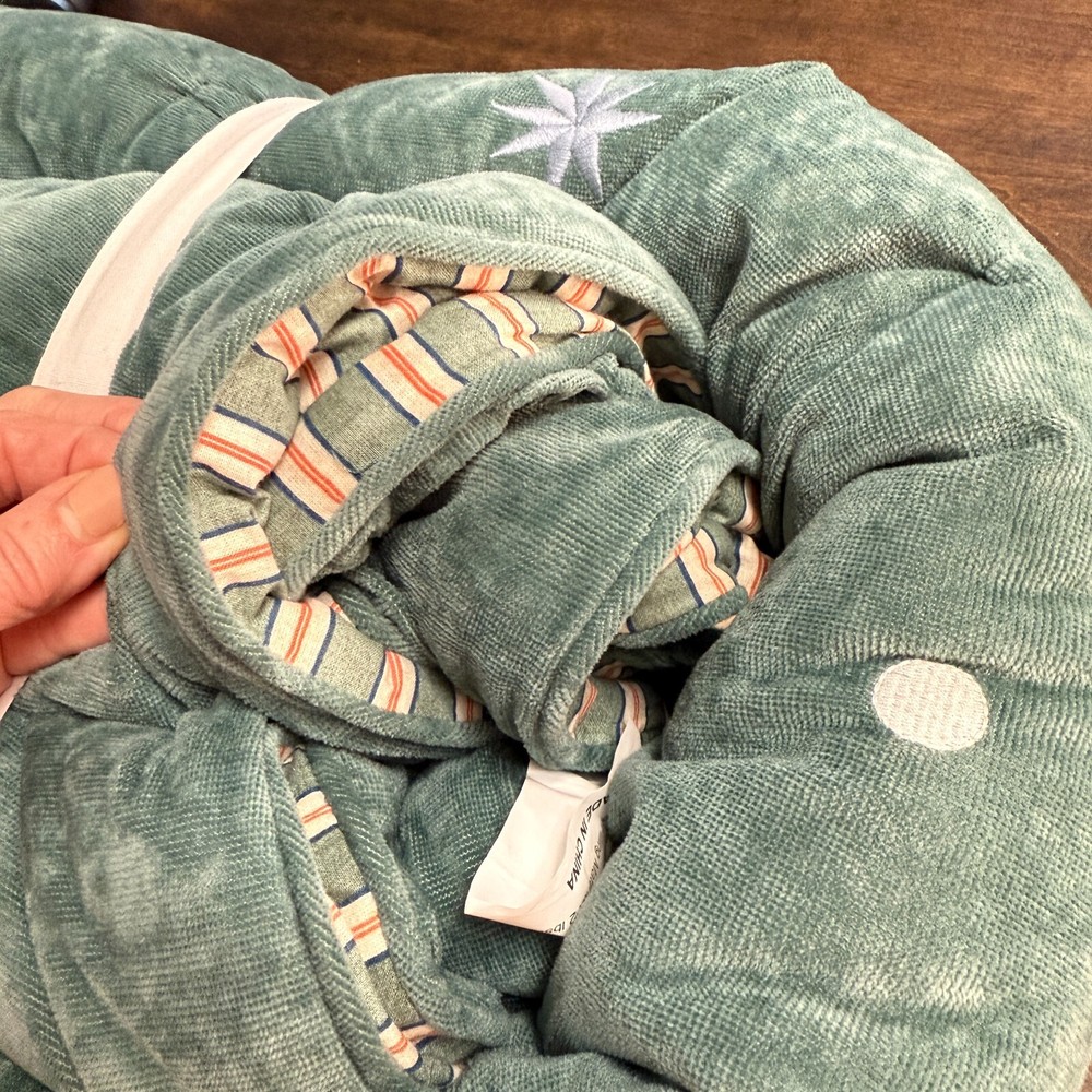 Absolutely perfect! This was what I wanted for my daughter’s room and it’s beautiful! The vacuum pack reduced the size for shipping so much more than I expected once I opened it fluffed right up! Arrived in perfect condition and super quick shipping. Packaging was really well done and the item was exactly as described in the listing! The value was great considering it was in the same condition as had I bought directly from PB but was less!