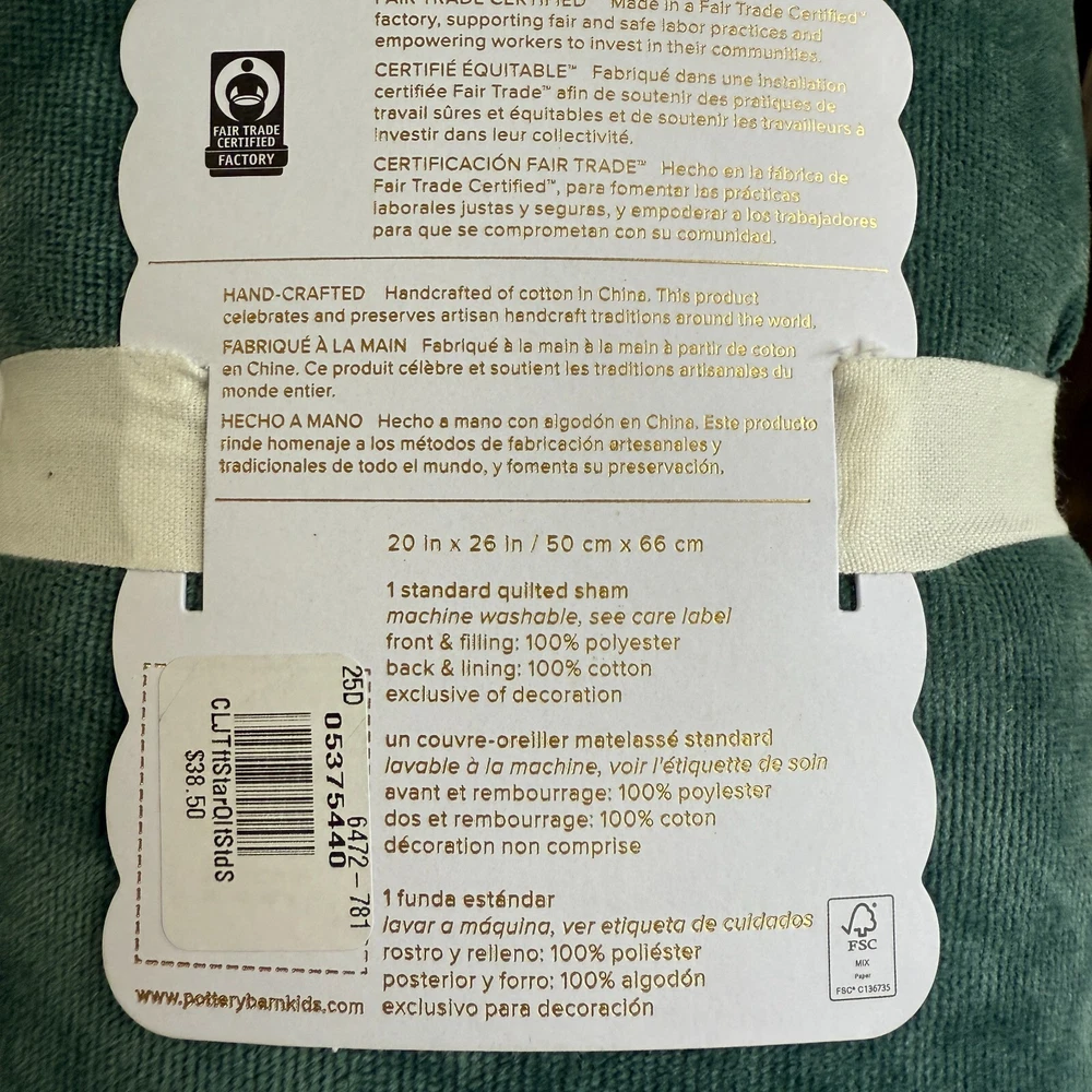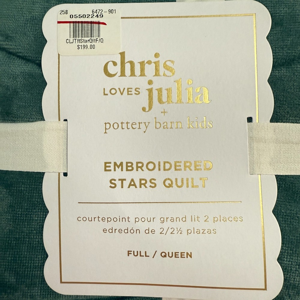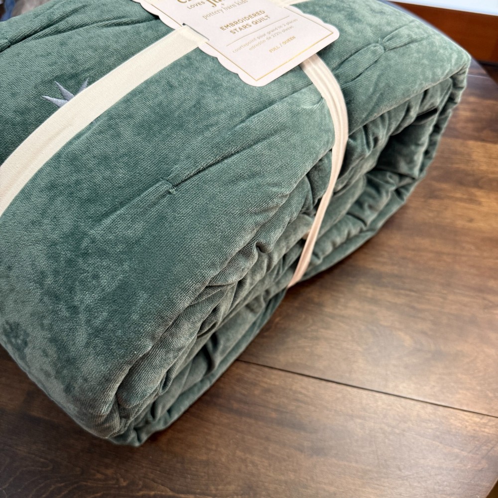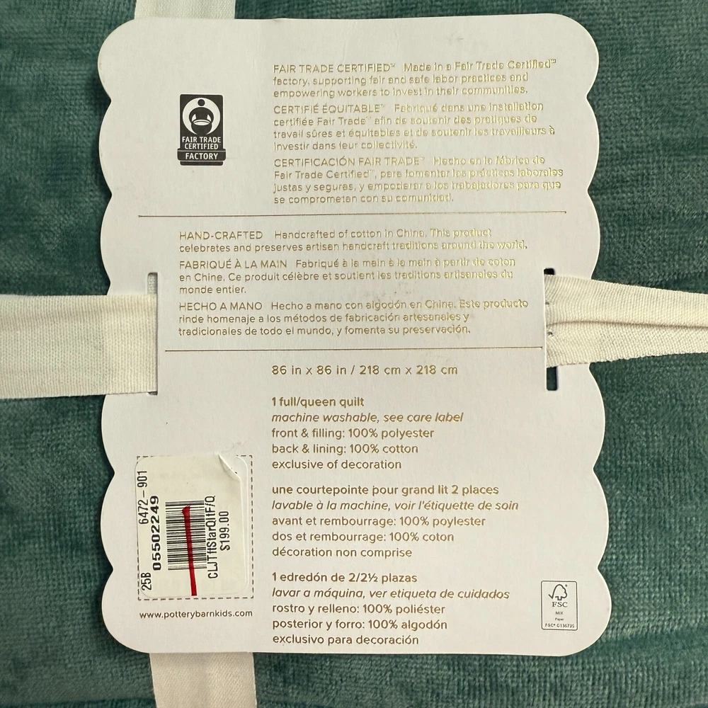 Embroidered with stars and tufted by hand, this quilt lends a stellar look to their sleep space. Made from corduroy with a cotton backing, it reverses to stripes for classic, timeless detail. Designed in collaboration with celebrated home designers and renovators, Chris and Julia Marcum. DETAILS THAT MATTER Quilt is handmade from 100% polyester baby corduroy. Filled with 200-gram-weight polyester batting. Reverses to a 100% cotton striped design. Full features 178 hand-tufted details. KEY PRODUCT POINTS Pottery Barn Kids exclusive. Quilt, shams and inserts sold separately. Machine wash. DIMENSIONS Quilt Full/Queen: 86" square 2 STANDARD SHAMS CARE Large capacity washer recommended. Machine wash cold water; gentle cycle. Use only non-chlorine bleach; if needed. Tumble dry on low heat; remove promptly. Warm iron as needed. Shipping & handling: We ship same or next day. Large comforters & quilts are vacuum packed with a reusable storage bag to save shipping cost and preserve the item. Questions: Please reach out. We respond very quickly. We strive for 5-star service in our product quality, shipping speed & customer service. We know you have many choices on eBay and appreciate that you have chosen to shop with us. Zoe's Castle | eBay Stores