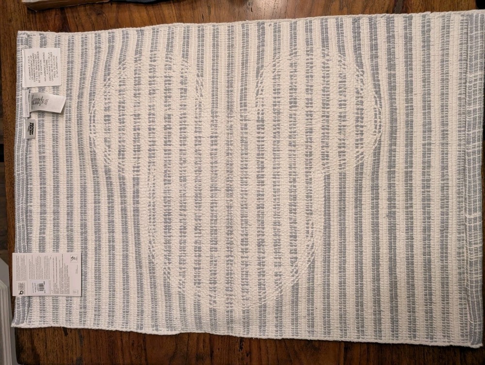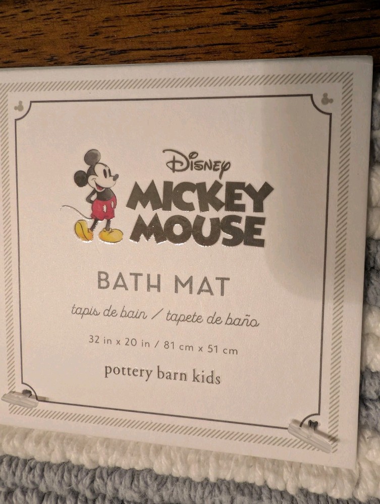 POTTERY BARN KIDS Disney Home x Sanderson Mickey Mouse Bath Mat-NWT Made of 100% cotton with a mixture of cut and looped piles for a blend of texture and softness. Rug is reactive-dyed – dye reacts to the fiber and becomes part of the fiber, resulting in excellent wash-fastness. Non-slip backing is made of synthetic latex, which makes it non-slip for added safety. Overall: 32" wide x 20" high Pile Height: 0.25" high Weight: 2.5 lbs SHIPPED FREE!