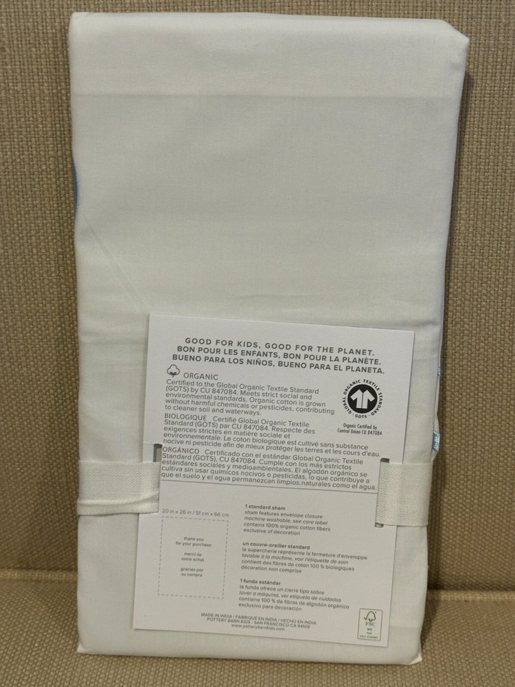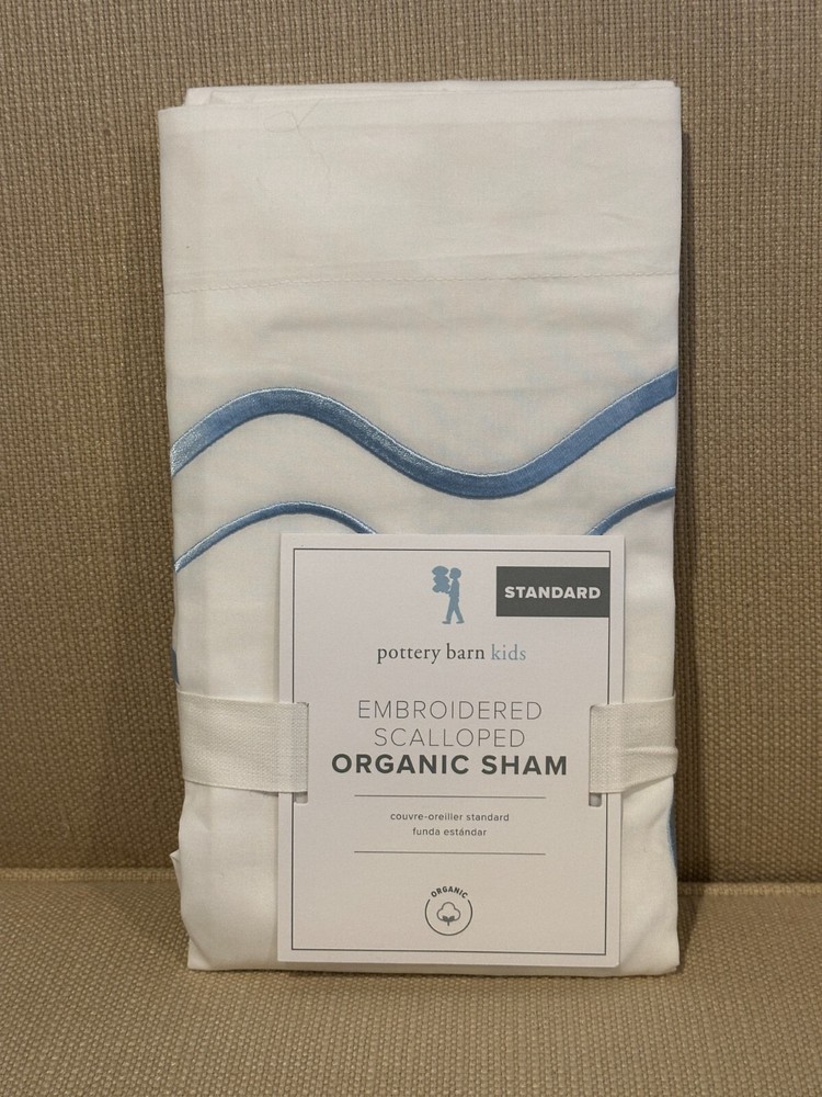 POTTERY BARN KIDS EMBROIDERED SCALLOPED BLUE STANDARD SHAM NEW