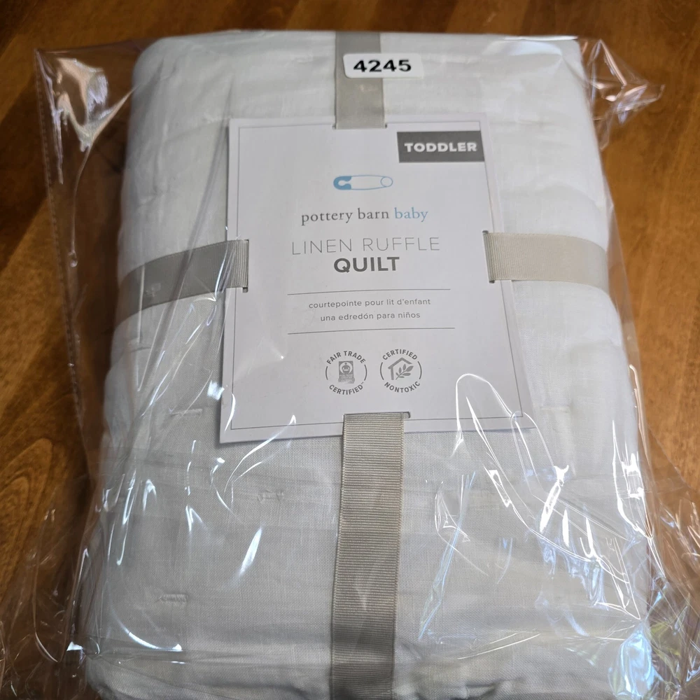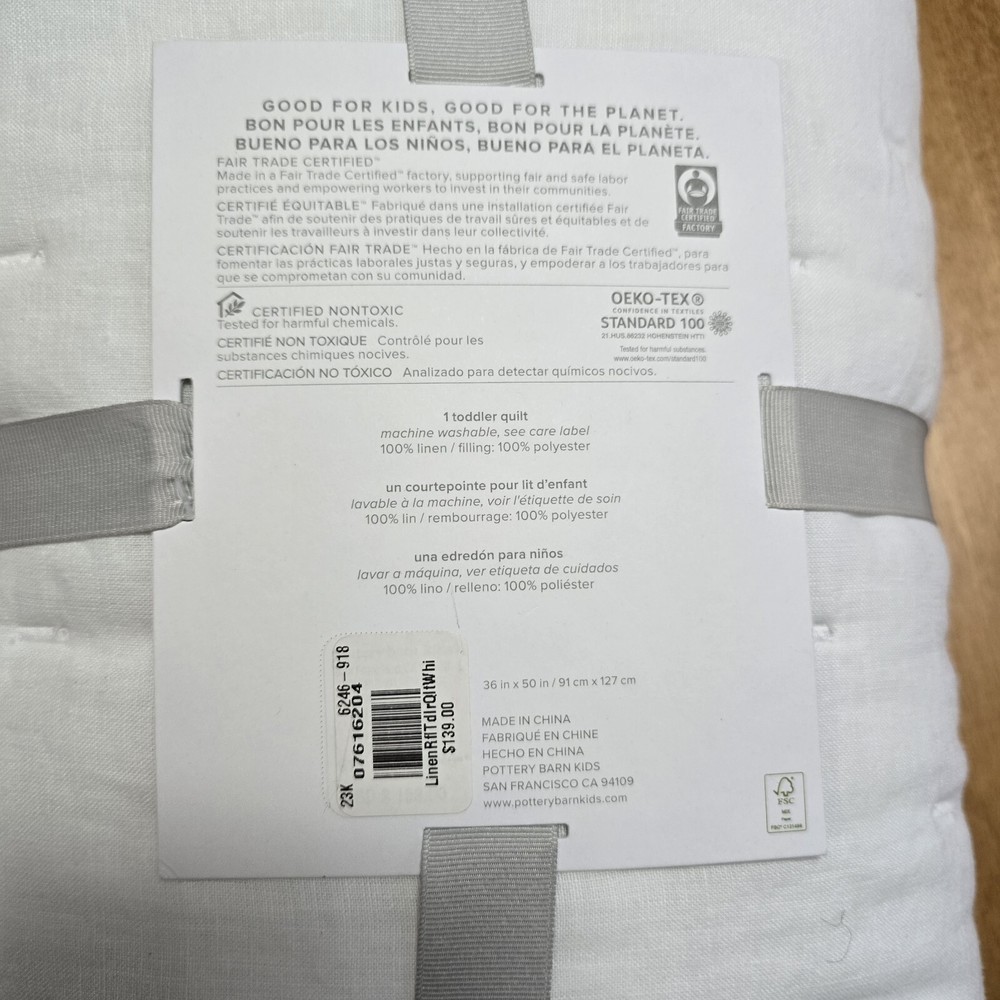 Elevate your baby’s nursery with linen, a natural fabric loved for its durability, breathability and lived-in look. Beautiful hues and classic styling give this bedding timeless appeal, and ruffled edges make the quilt a total charmer. DETAILS THAT MATTER Features decorative ruffle along edges and reverses to same color. Made of 100% Belgian Linen. Linen woven from Belgian flax is constructed in China. Filled with 100% polyester fibers. 200-gram weight. OEKO-TEX® STANDARD 100: tested for 1000+ harmful substances to keep you and your family safe from chemicals common to textile manufacturing. 21.HUS.86232 HOHENSTEIN HTTI. DIMENSIONS Quilt: 36" wide x 50" long Ruffle: 4" wide CARE Machine wash in cold water, gentle cycle. Use only non-chlorine bleach, if needed. Tumble dry on low heat; remove promptly. Warm iron, as needed. Shipping & handling: Large comforters & quilts are vacuum packed with a reusable storage bag to save shipping cost and preserve the item. Questions: Please reach out. We respond very quickly. We strive for 5-star service in our product quality, shipping speed & customer service. We know you have many choices on eBay and appreciate that you have chosen to shop with us. We have a variety of new and used items for whole family! Please check out our store and be sure to add us as a favorite seller. Zoe's Castle | eBay Stores