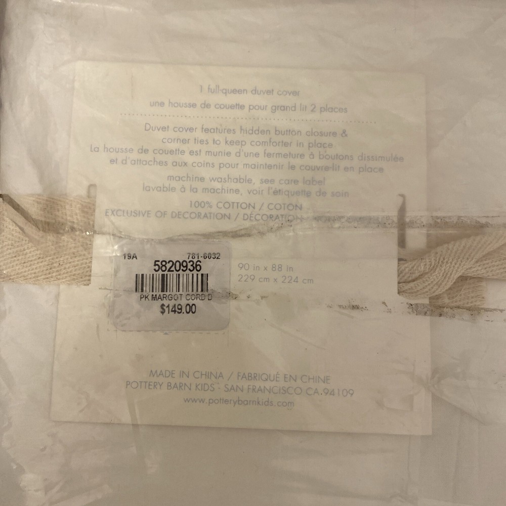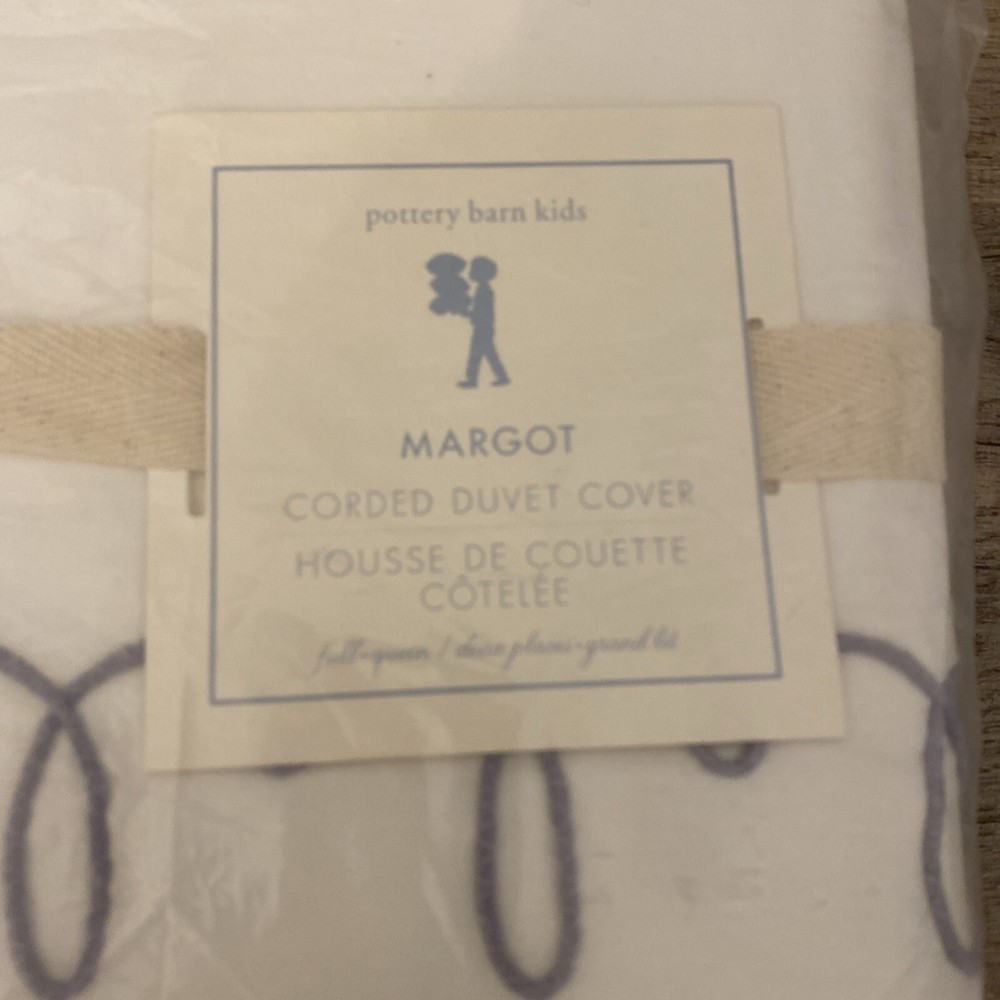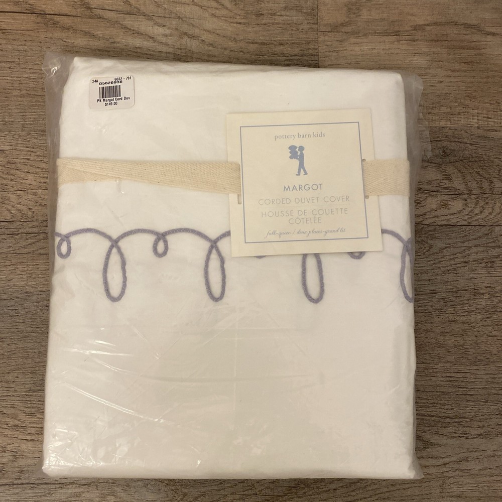 This duvet cover features a creative corded frame to add classic style with a twist to their bed. Woven of pure cotton and with interior corner ties and a button closure, this soft duvet cover's insert stays in place. DETAILS YOU’LL APPRECIATE Made of 100% cotton. 200-thread count. Duvet reverses to white color. Duvet cover is finished with interior corner ties and a button closure to keep the duvet in place. KEY PRODUCT POINTS Duvet, sham and inserts sold separately. Machine wash. Imported. Full/Queen: 88" wide x 90" long Thread used for cord is a light purple CARE AND MAINTENANCE Wash before first use. Machine wash in warm water; gentle cycle. Use only non-chlorine bleach, if needed. Tumble dry on low heat. Warm iron as needed.