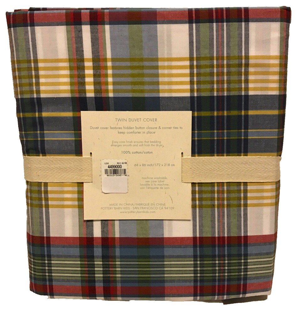 Pottery Barn Kids Wesley Plaid Cotton Twin Duvet Cover 68x86 4499000