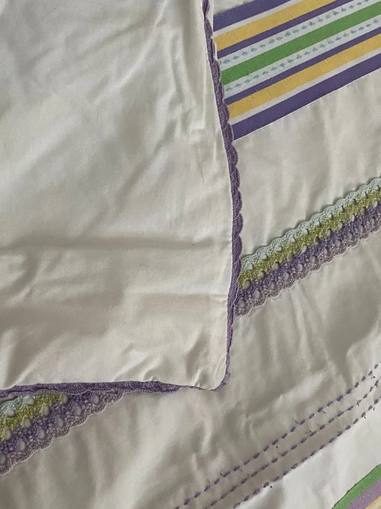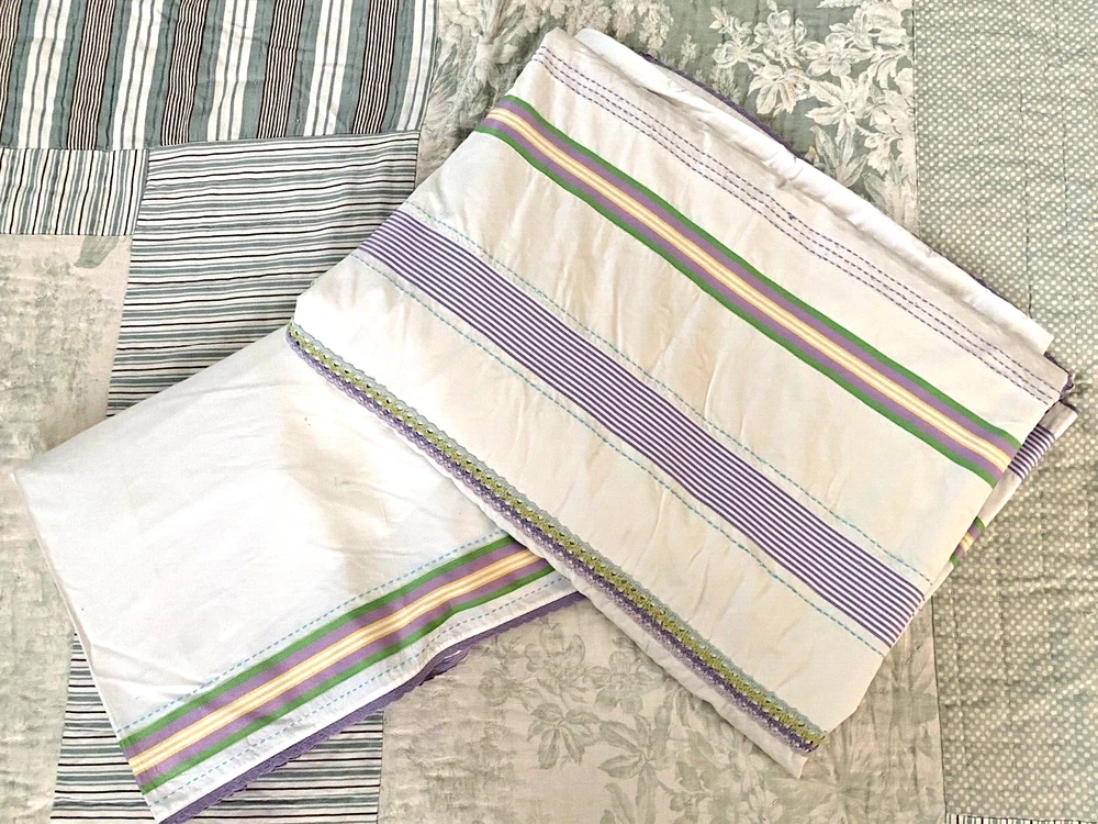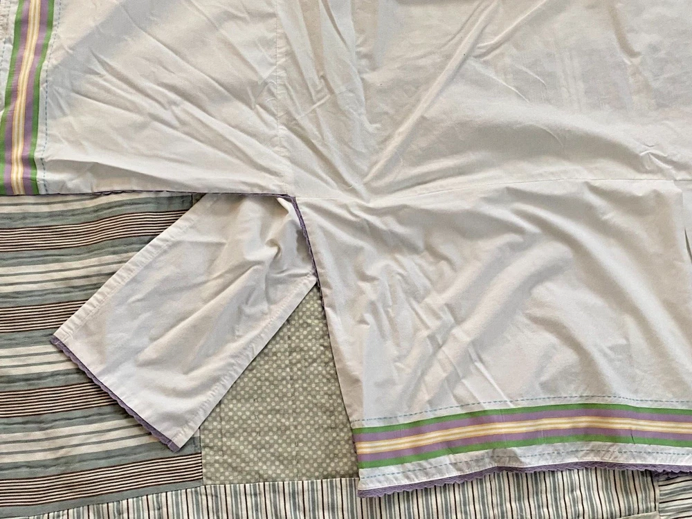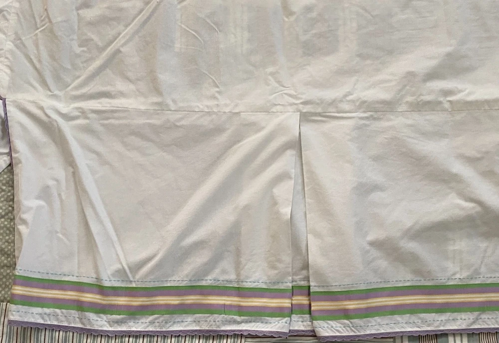 POTTERY BARN KIDS duvet and bed skirt set TWIN One small approx. 1 cm stain on duvet Few small gray stains/discolorations on bed skirt - please see last photos. Otherwise, good used condition