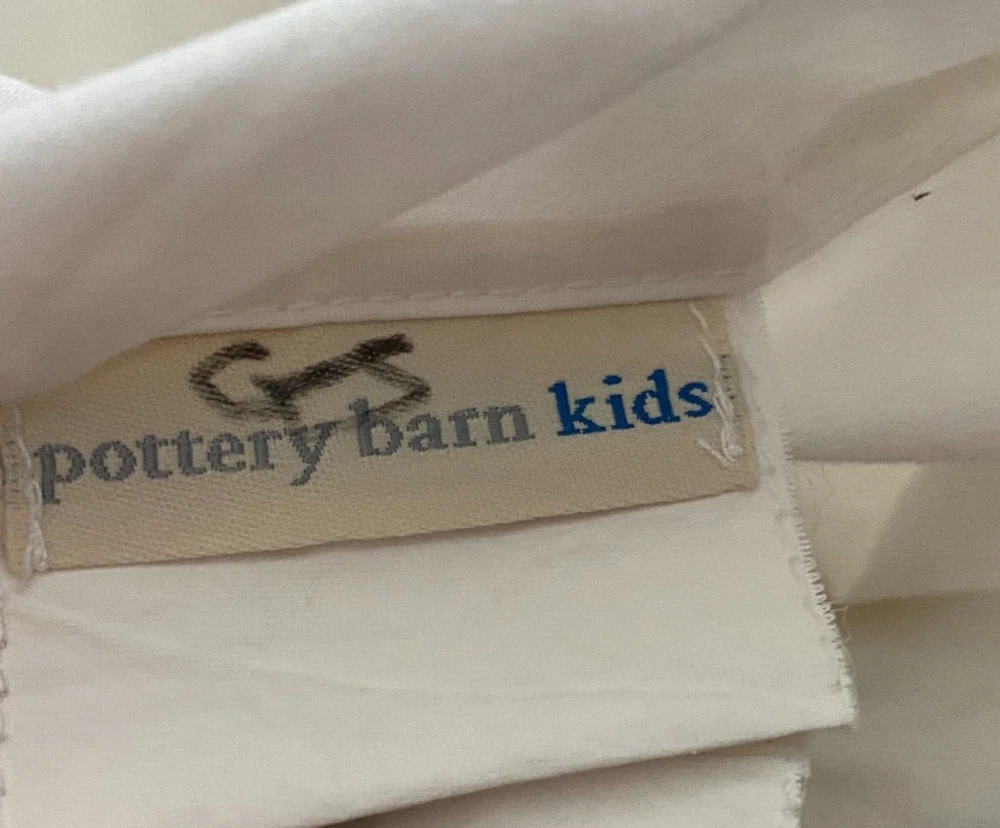 POTTERY BARN KIDS duvet and bed skirt set TWIN One small approx. 1 cm stain on duvet Few small gray stains/discolorations on bed skirt - please see last photos. Otherwise, good used condition...